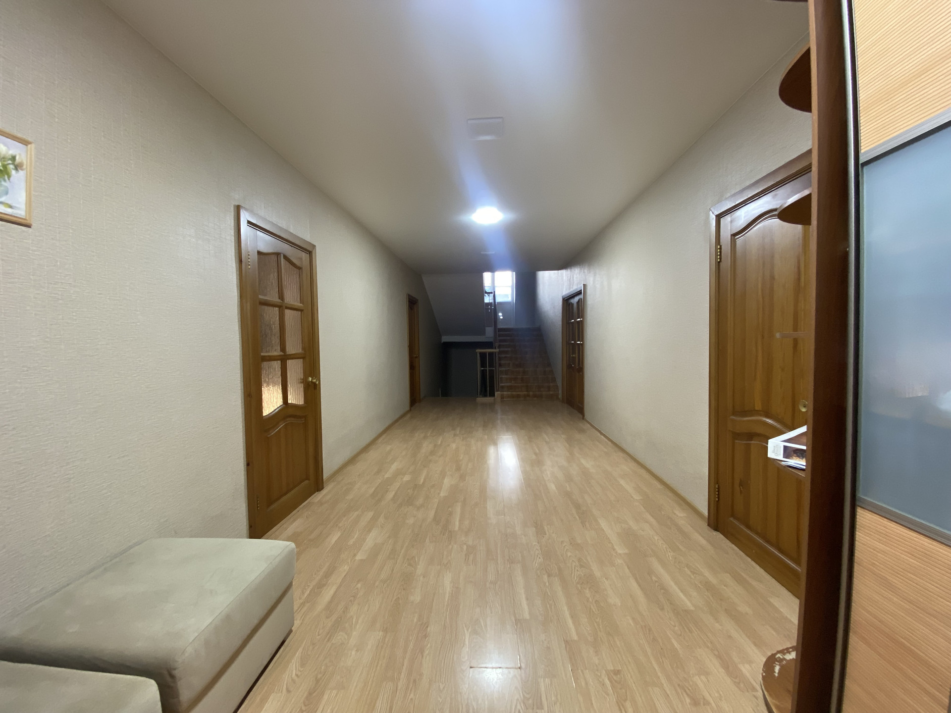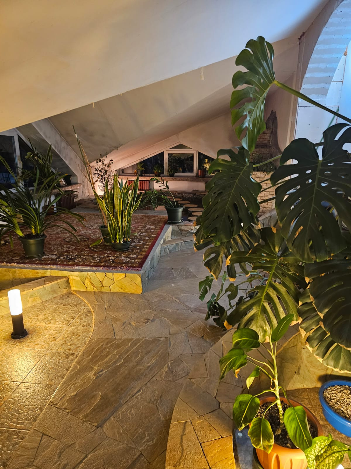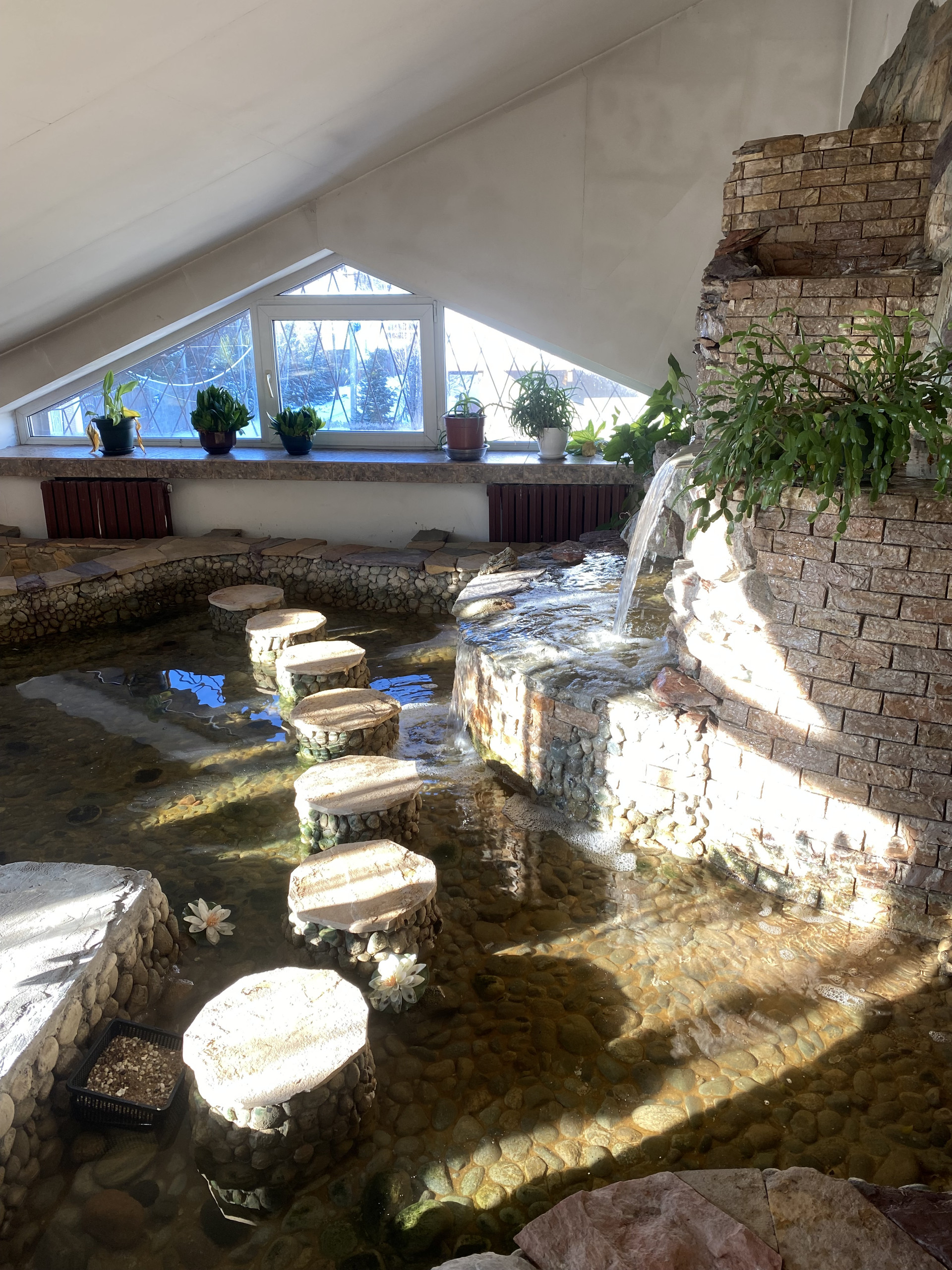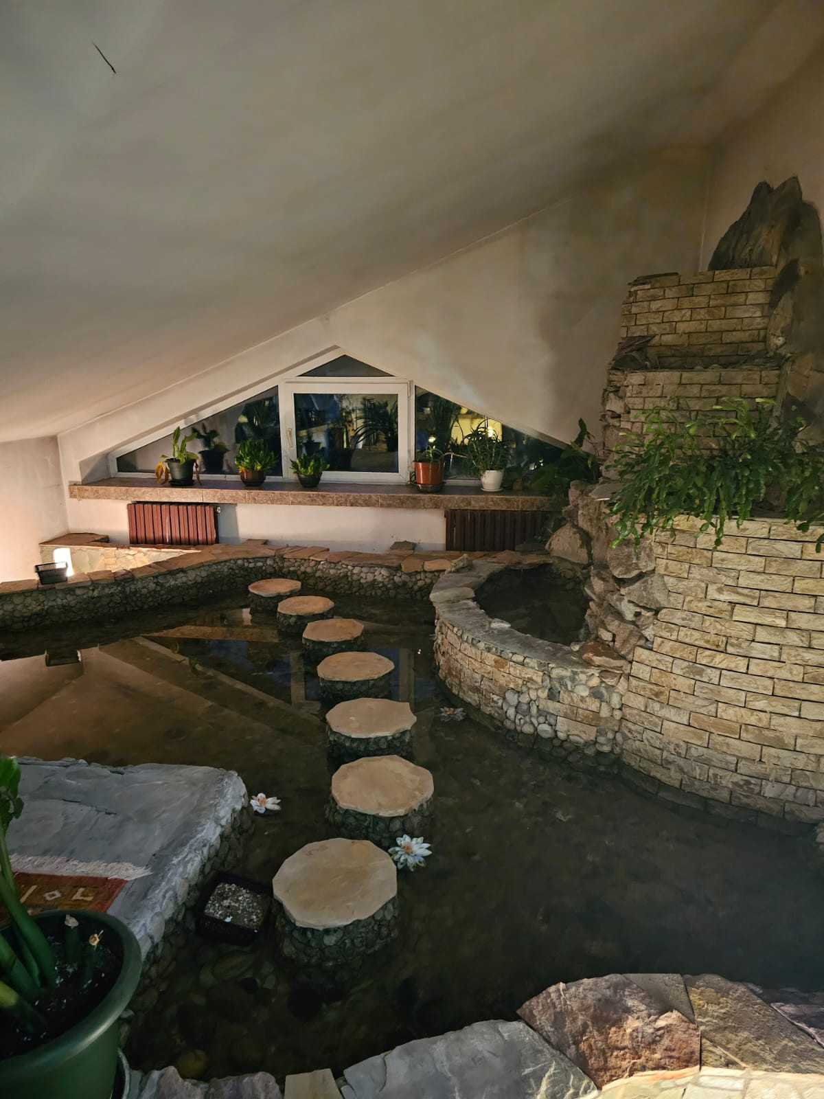 На втором этаже имеются : большая спальня с выходом в зимний сад, в котором трехуровневый водопад и пруд с системой фильтрации воды , кабинет, три комнаты, ванная комната, холл.