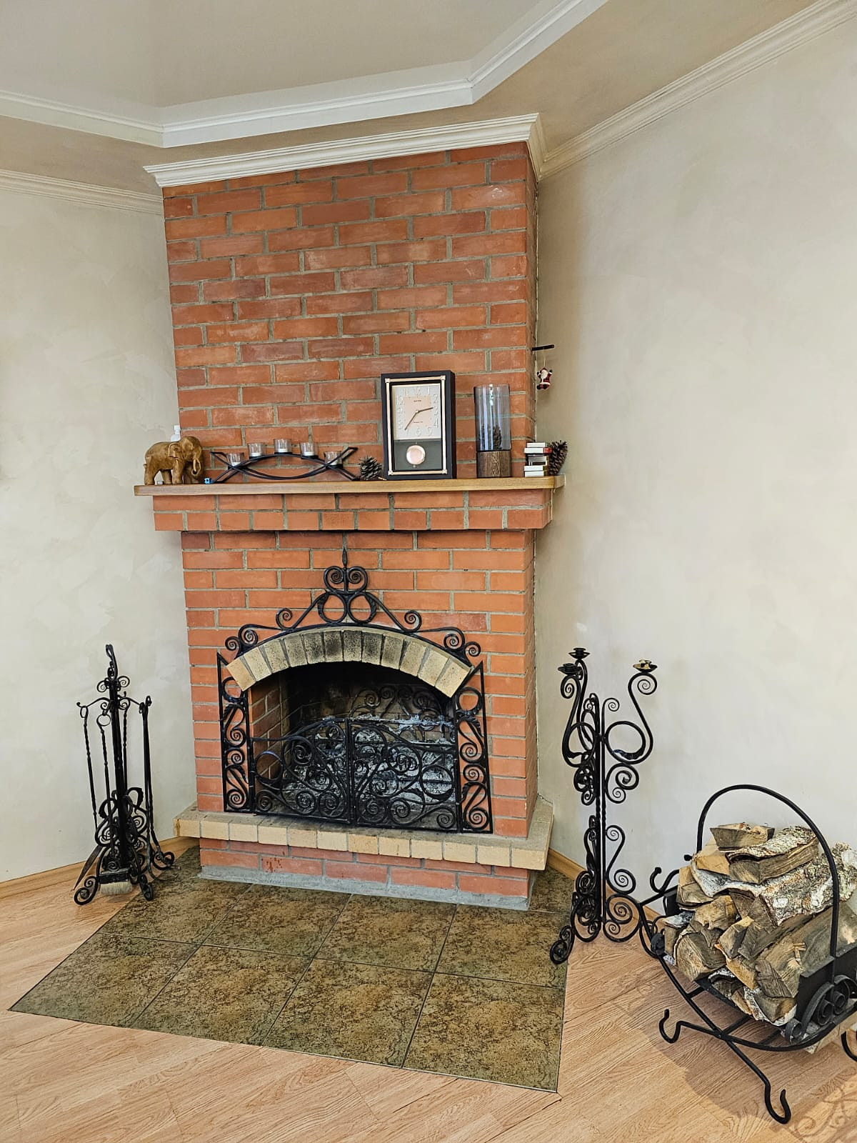 На первом этаже расположена шикарная кухня - столовая, гостиная с камином на дровах, санузел и просторный холл.
