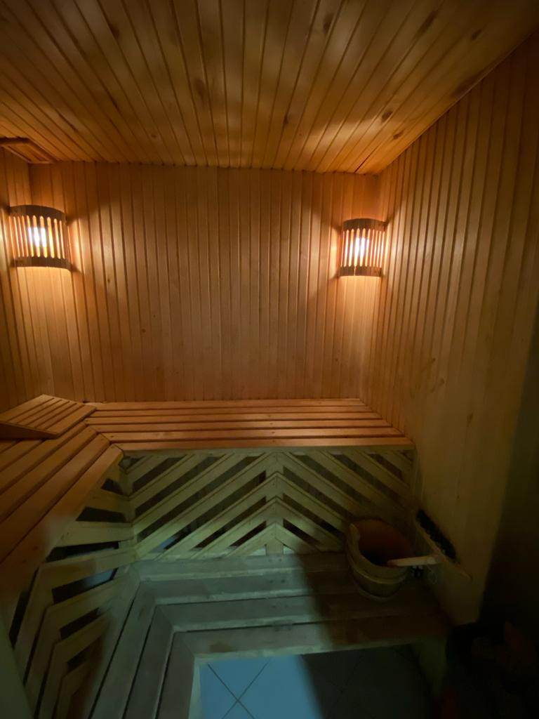 Цокольный этаж занимают спортзал, сауна с бассейном 5*5 с системой очистки и подогрева воды, комната для стирки и сушки белья, техническая комната с мультитопливным котлом.