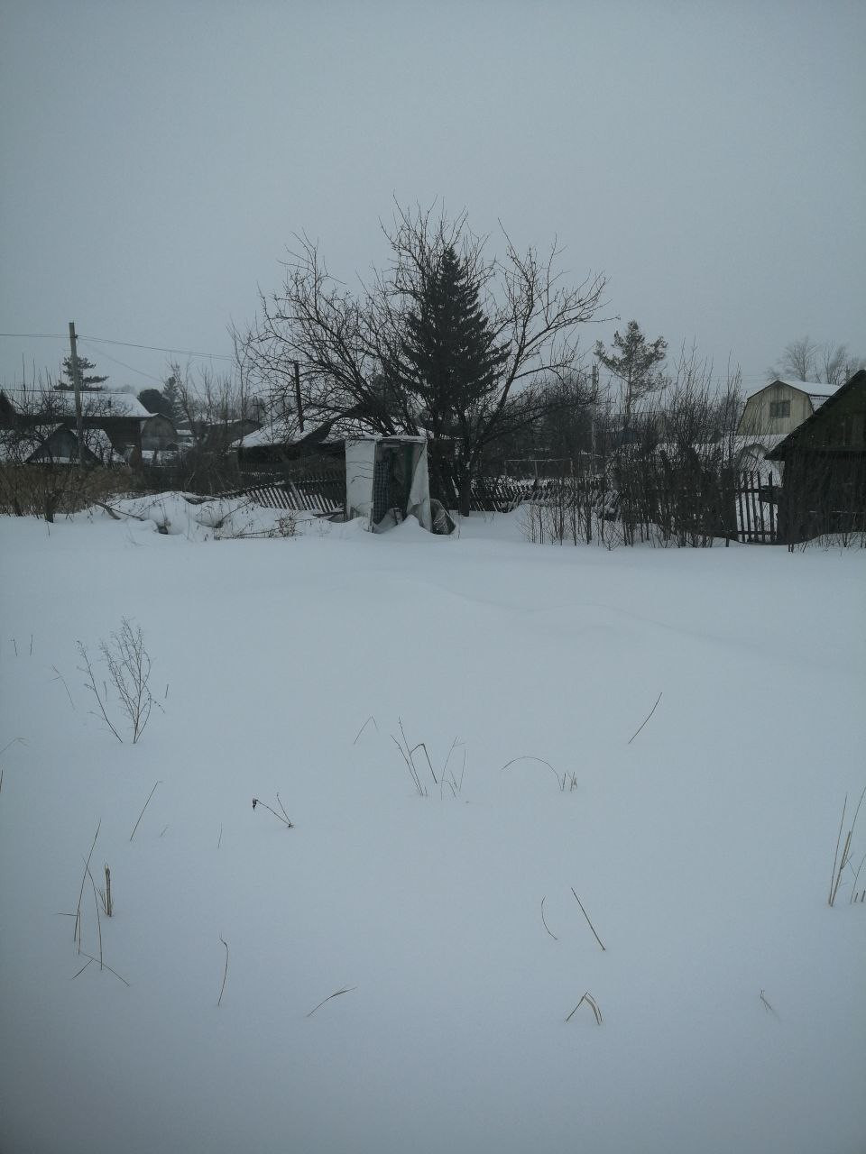 Участок ровный, прямоугольной формы, обнесенный высоким металлическим забором. На участке расположен щитовой домик, баня, сарай, строения старые но можно использовать как подсобные или бытовки.