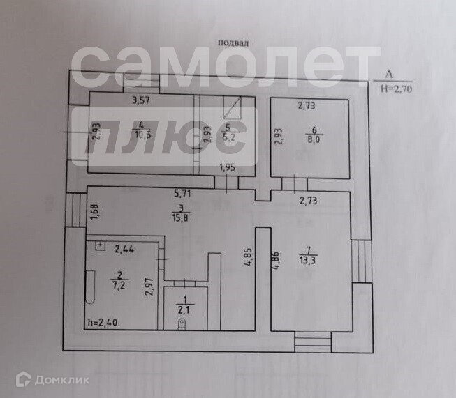 Высота потолков 2.6 м