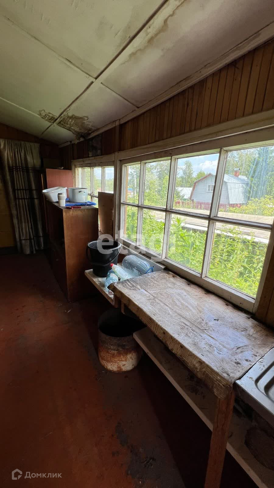 На территории небольшой домик 20 кв. м. с верандой и баней, не оформлен. Если обшить вагонкой и наклеить новые обои, будет шик!