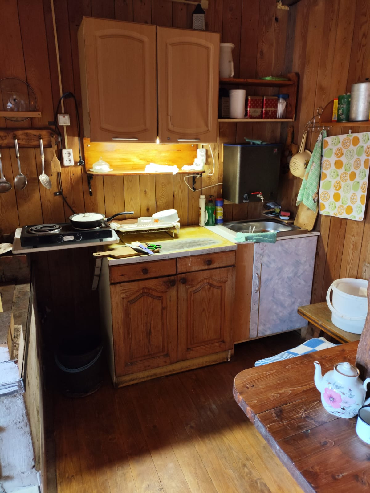 Дом из бруса, участок ухожен, все посадки есть, на участке 2 теплицы. Есть собственная скважина - вода питьевая, электричество круглый год - зимой не отключают. Отопление печное- печка кирпичная. Дороги зимой чистят, можно проживать круглогодично.