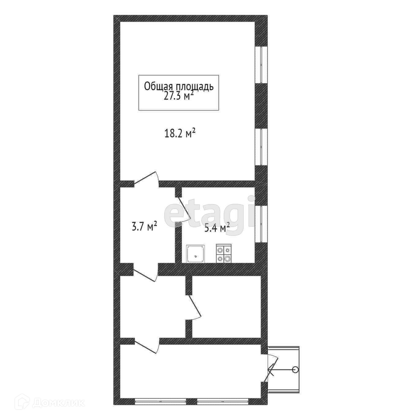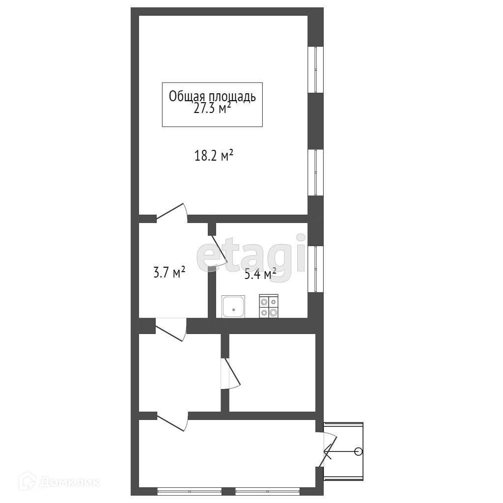 Общая площадь 27.3 м2