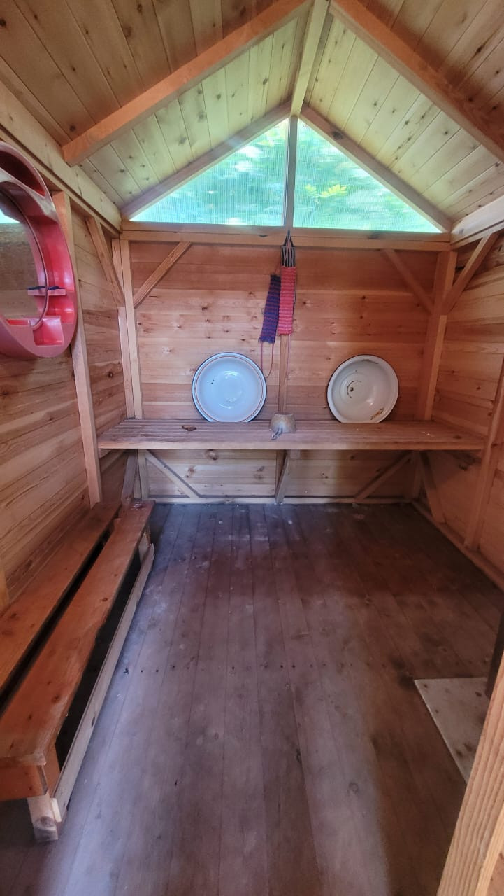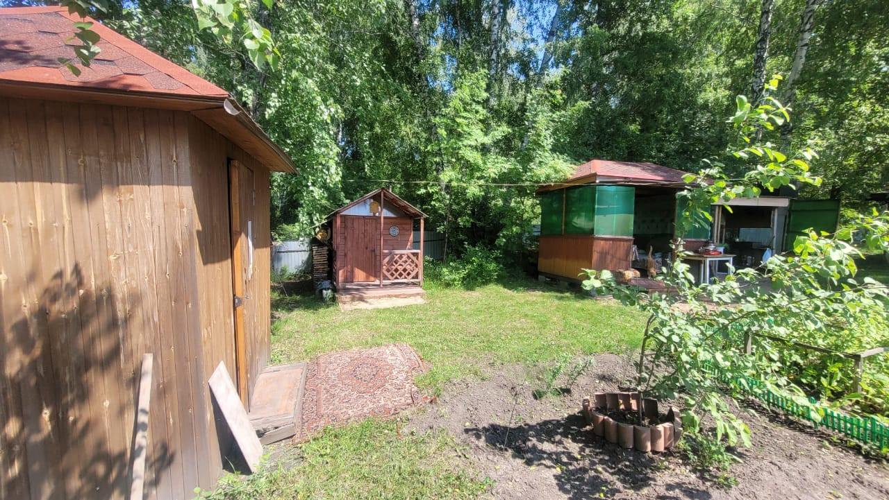 Летний деревянный дом, беседка, летний душ, хозпостройка для инвентаря садового, баня (облегчённый вариант) летняя. На участке остаётся теплица.