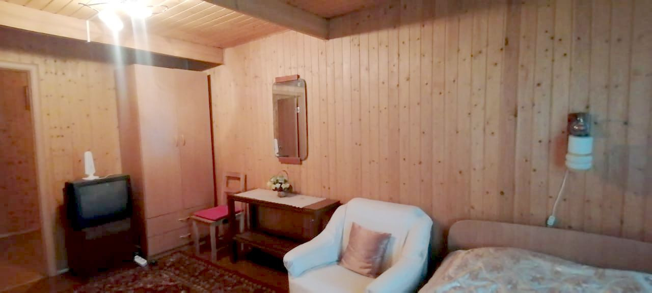 Участок окружен растительностью, дышется легко и свежо! Есть подъезд для машины, большая стоянка. Двухэтажный дом из бруса КЕДРА на первом этаже, второй этаж из бруса ЕЛи, обшит сайдингом из ели, стоит на на ленточном фундаменте, состоит из кухни-гостинной, зала-спальни, двух спален на втором этаже, внутри обшит вагонкой. Вода питьевая городская , свет. Отапливается печью, зимнее проживание возможно. Есть действующая баня из сосны с комнатой отдыха. Участок позволяет поставить бассейн, для полного счастья и много чего еще (зона барбекю и тд).