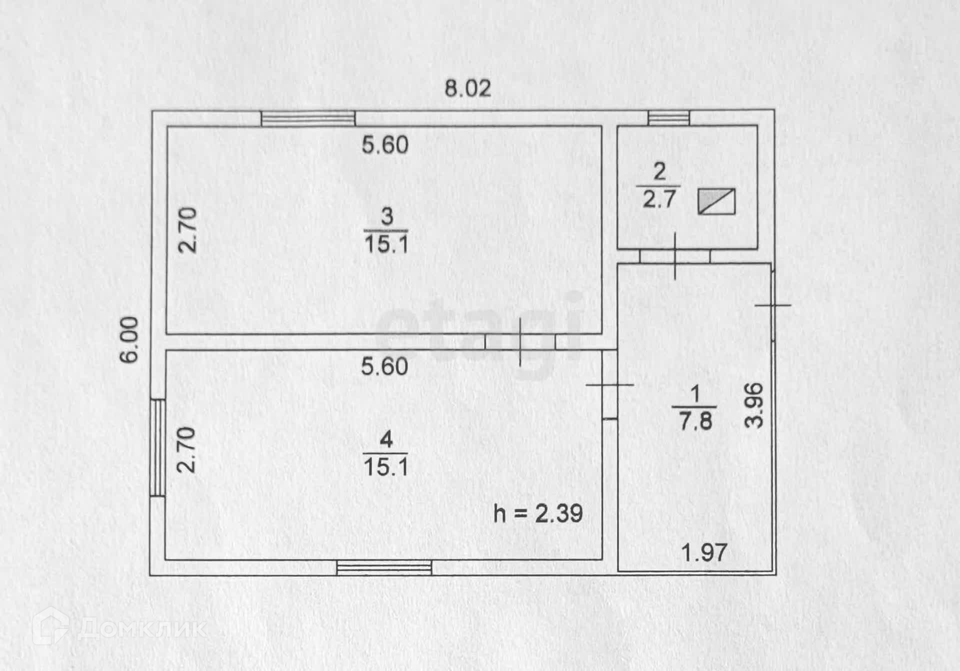 Общая площадь 42.8 м2