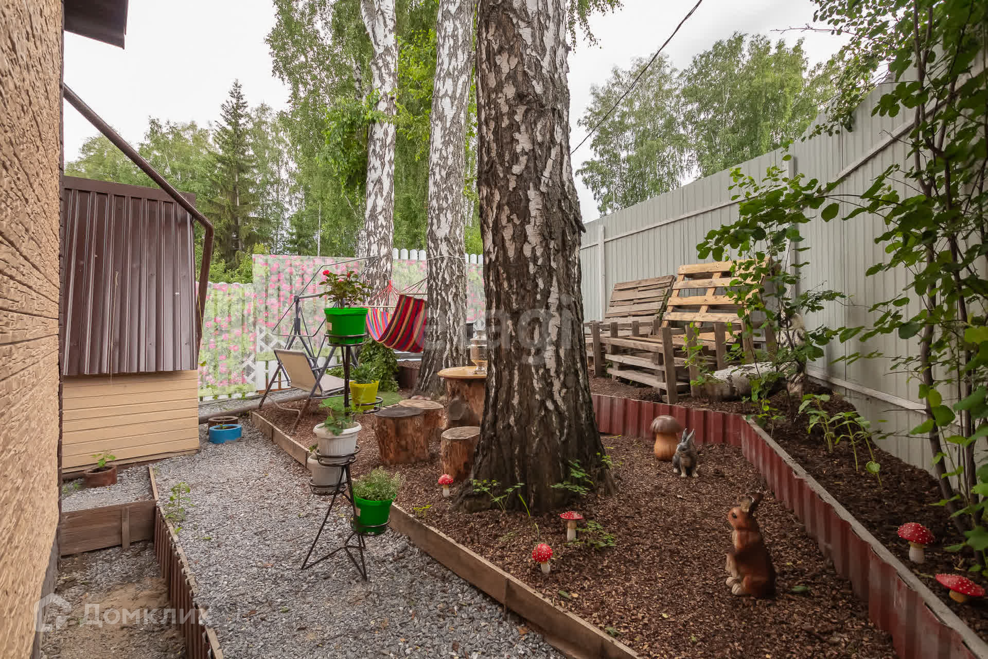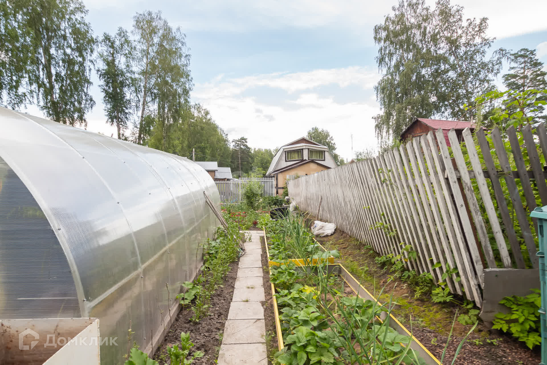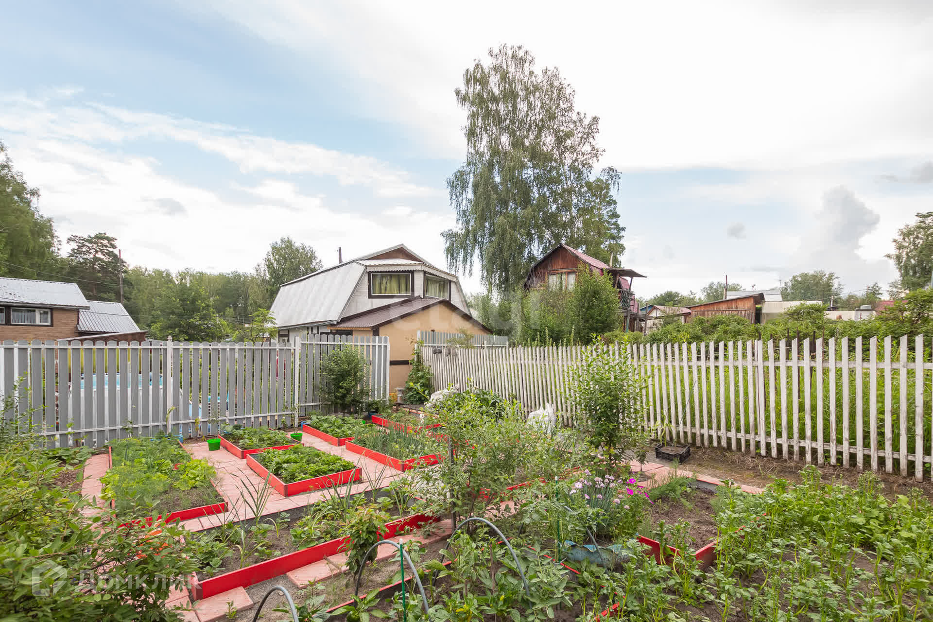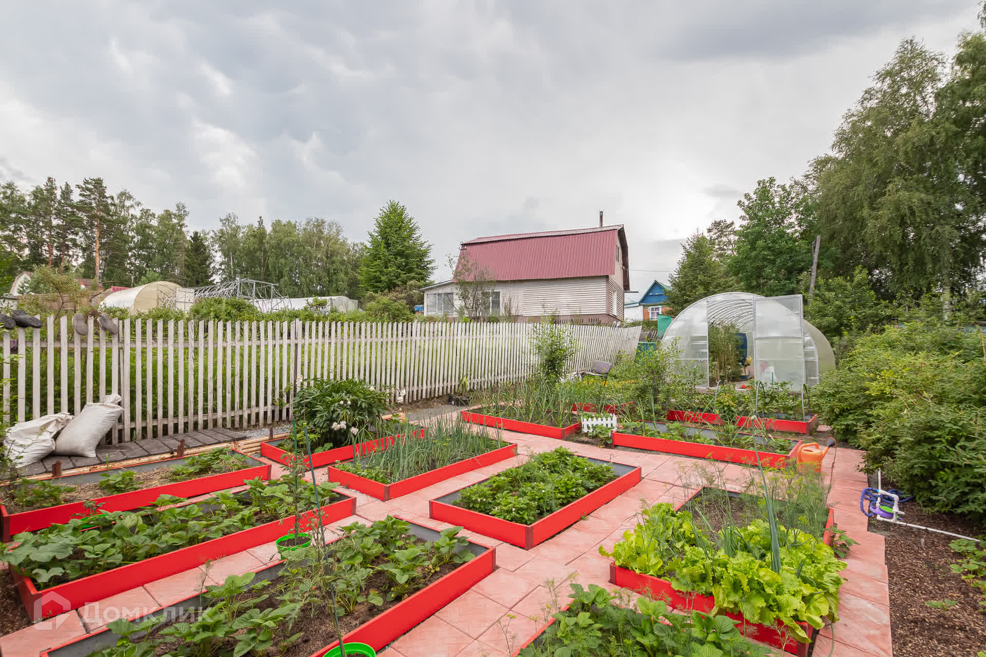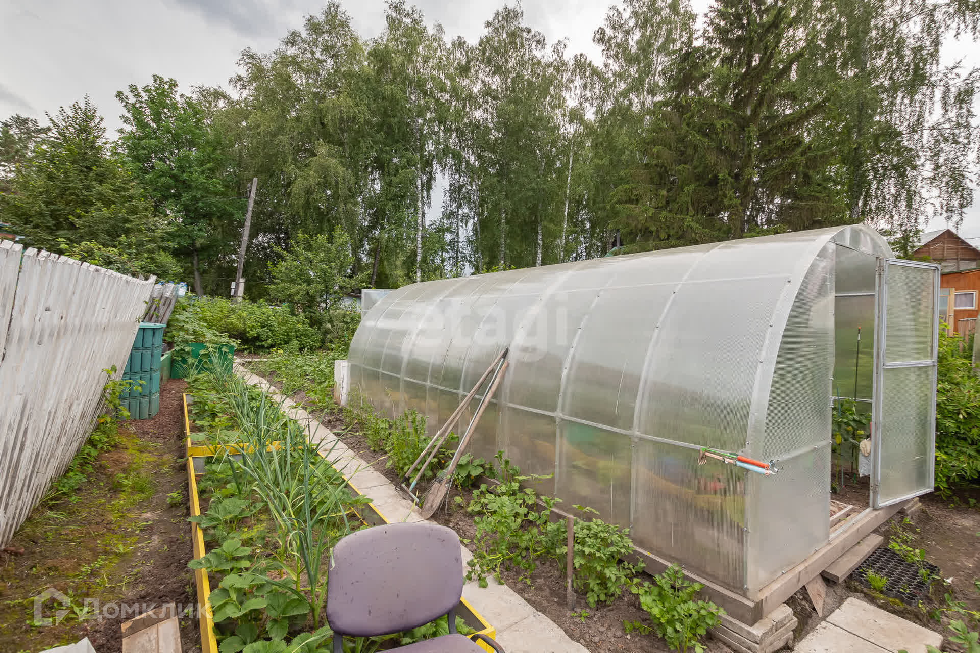 Так же есть огород с посадками, отгорожен забором.
