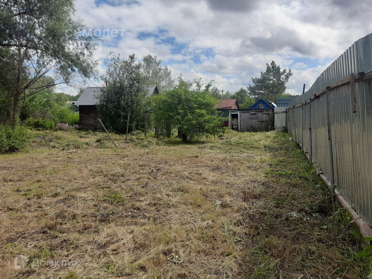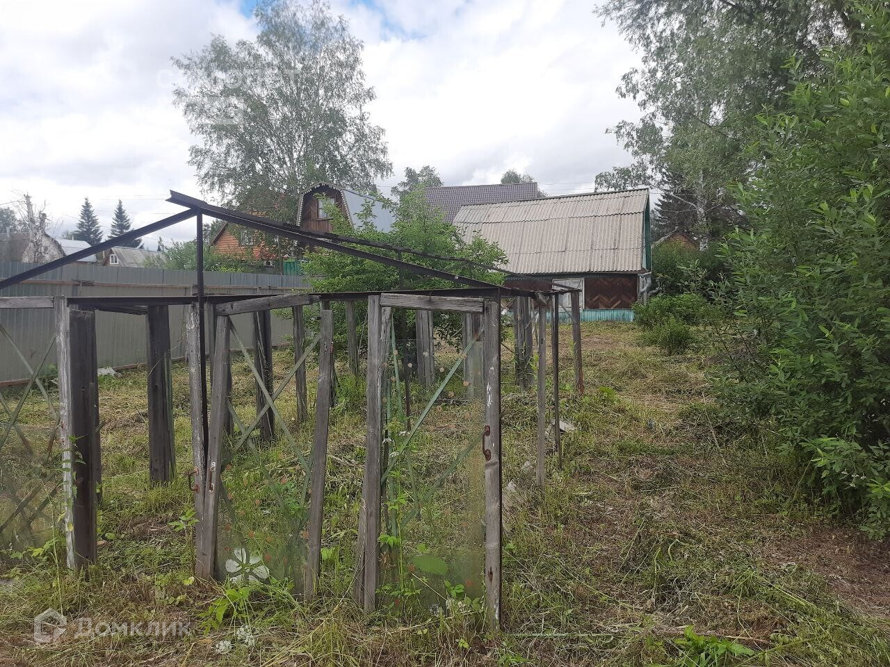 На участке есть Свет , Вода поливная (по расписанию). Участок огорожен забором -профлист по одной стороне, есть калитка и ворота, есть место под автомобиль. Очень много свободного места , участок не засажен грядками, есть железный каркас парника.