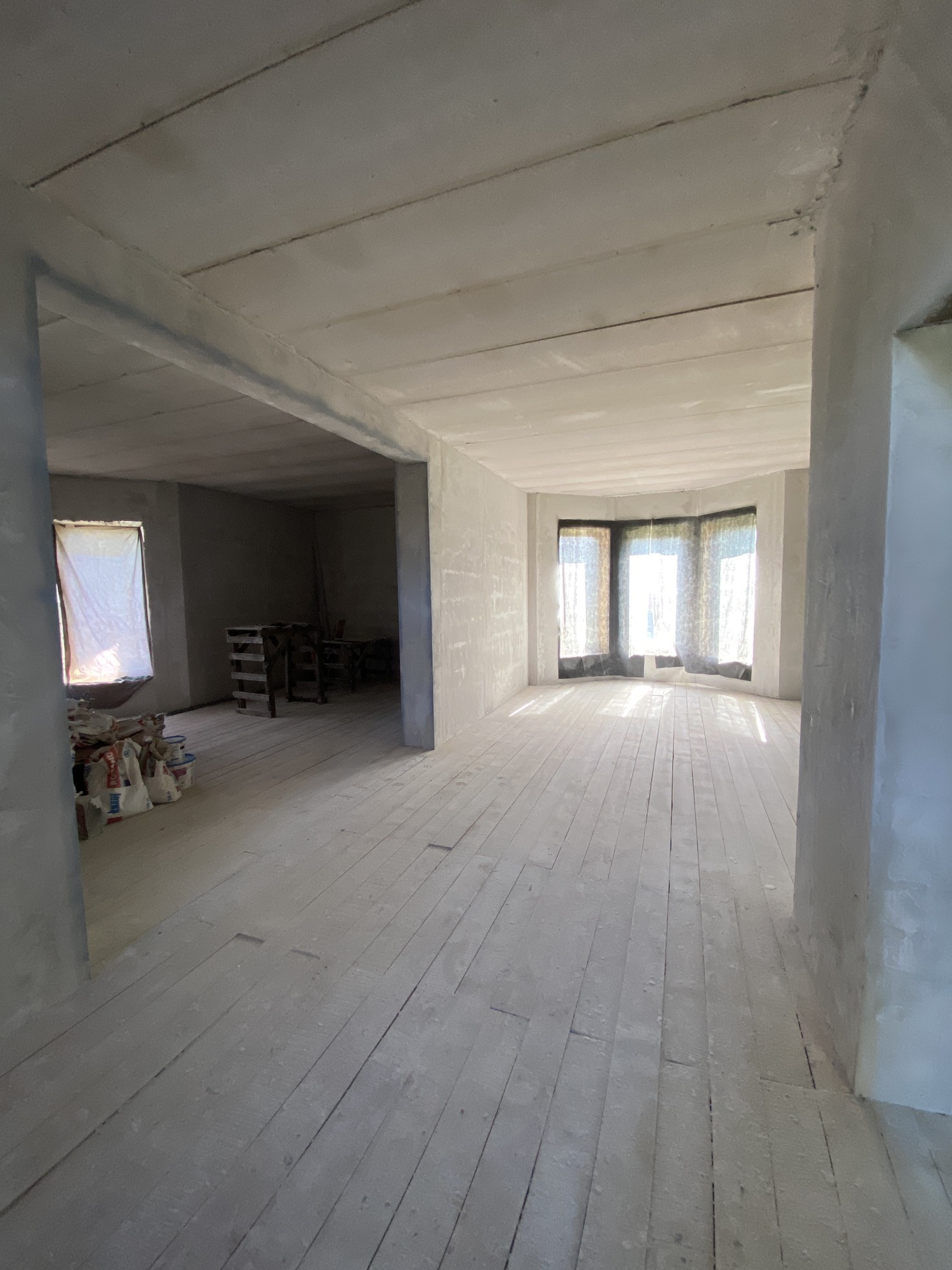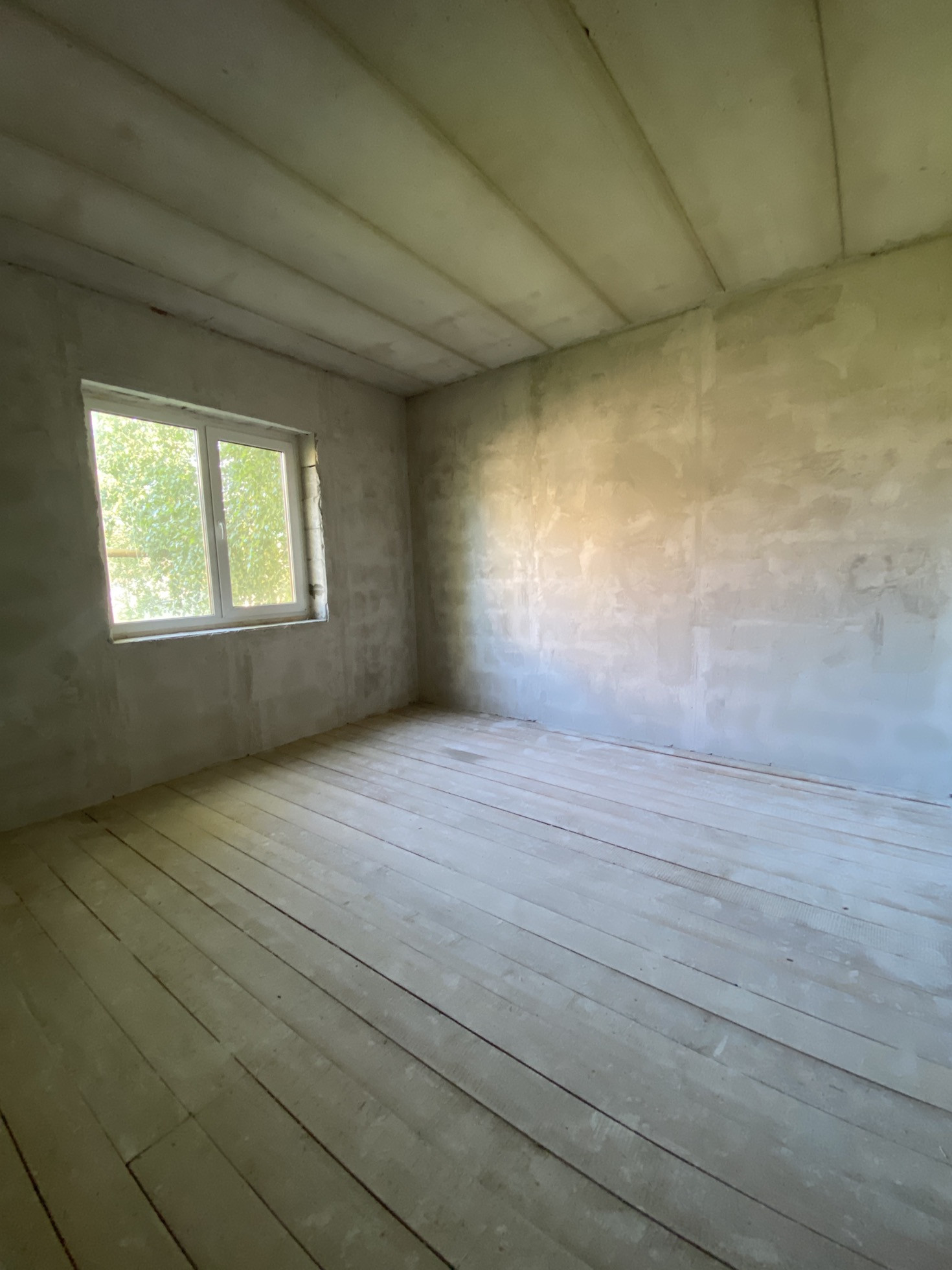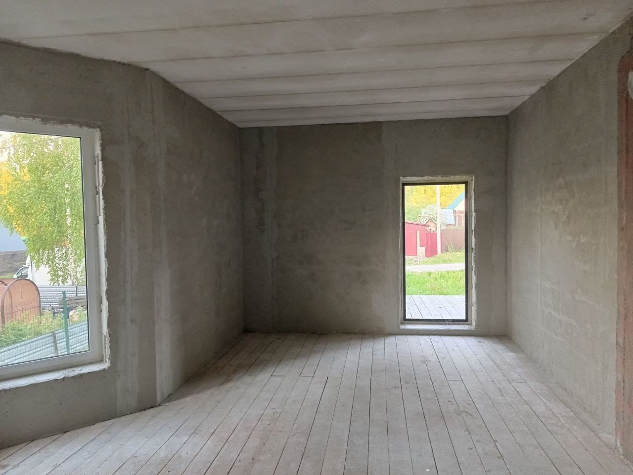 В доме выполнены грязные работы, оштукатурены стены, новому хозяину остается сделать отделку на свой вкус ( не переделывая за другими)