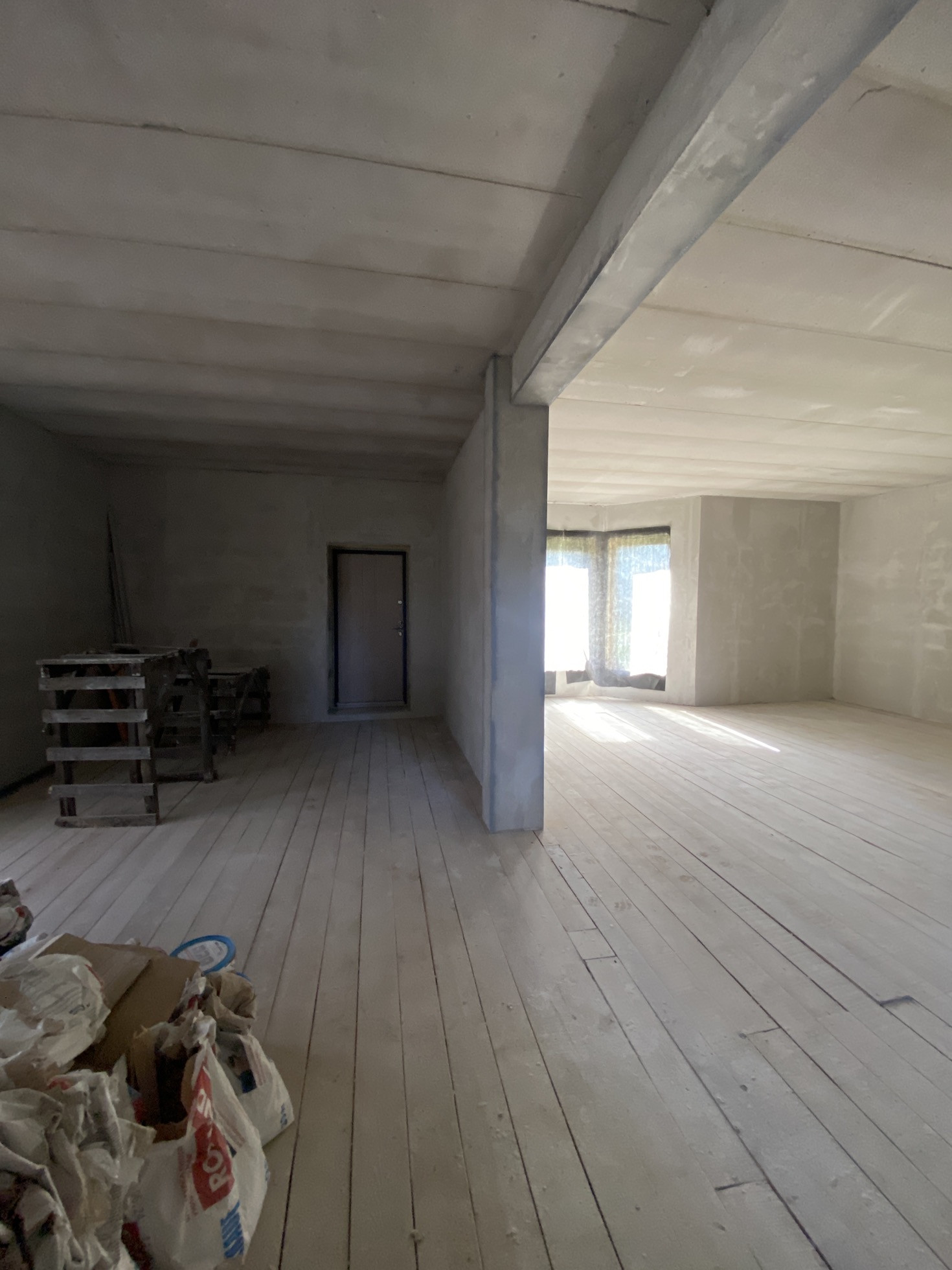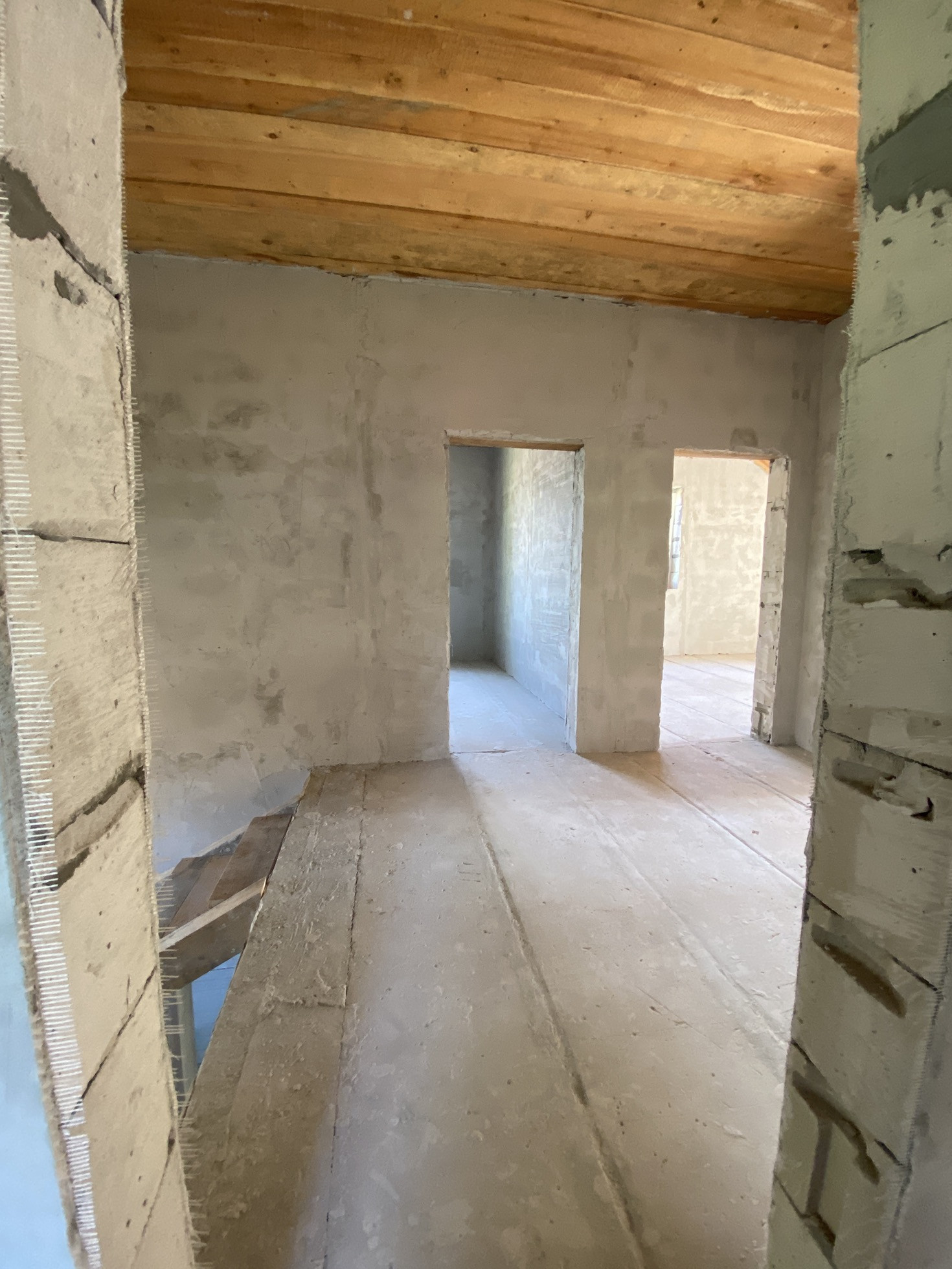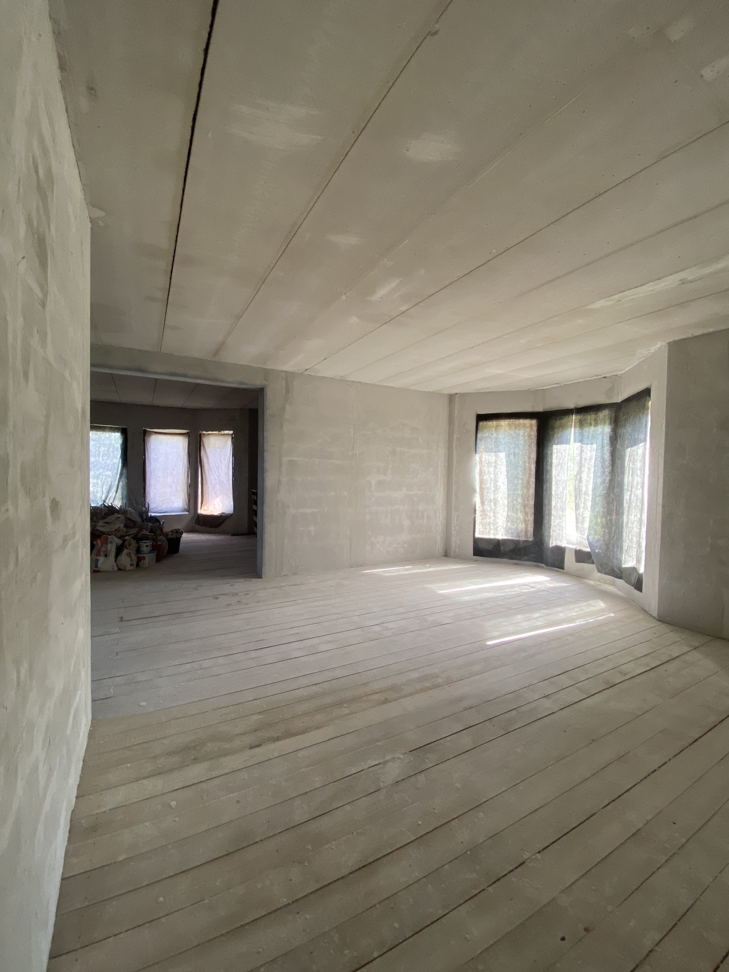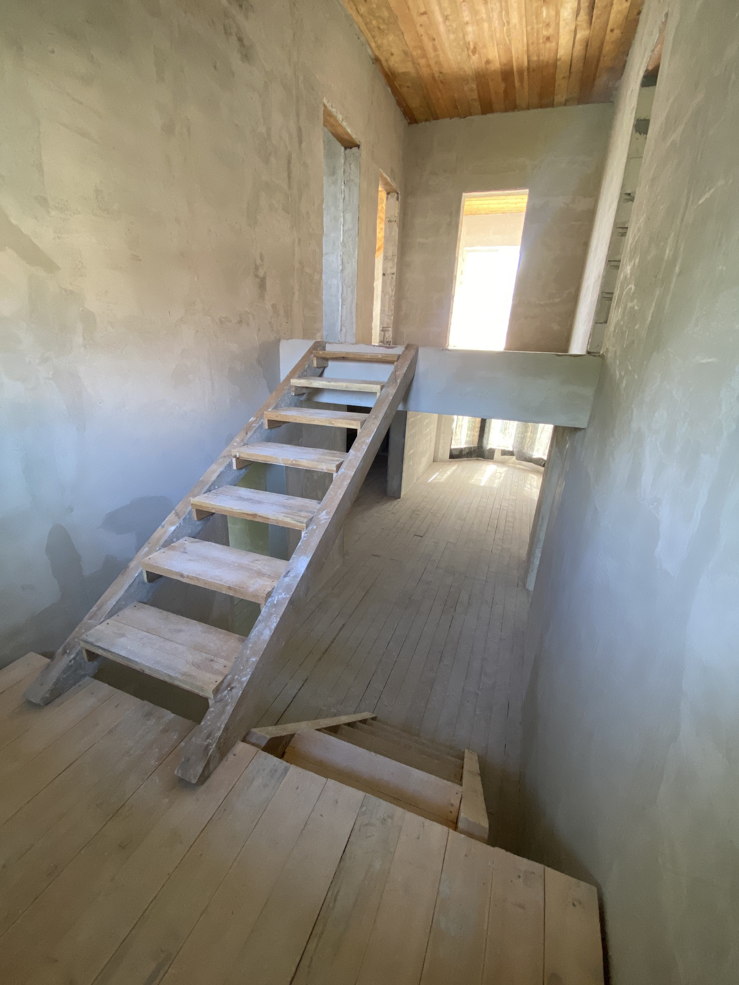 В доме выполнены грязные работы, оштукатурены стены, новому хозяину остается сделать отделку на свой вкус ( не переделывая за другими)