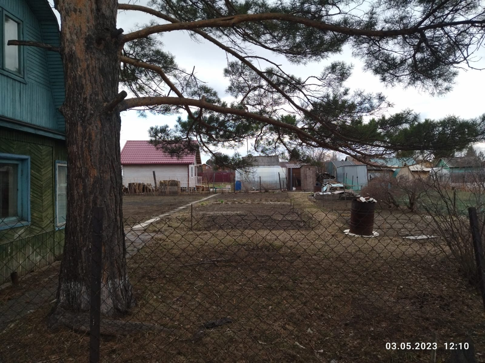 Ровный участок правильной формы имеет посадки: смородина, жимолось, малина, крыжовник.