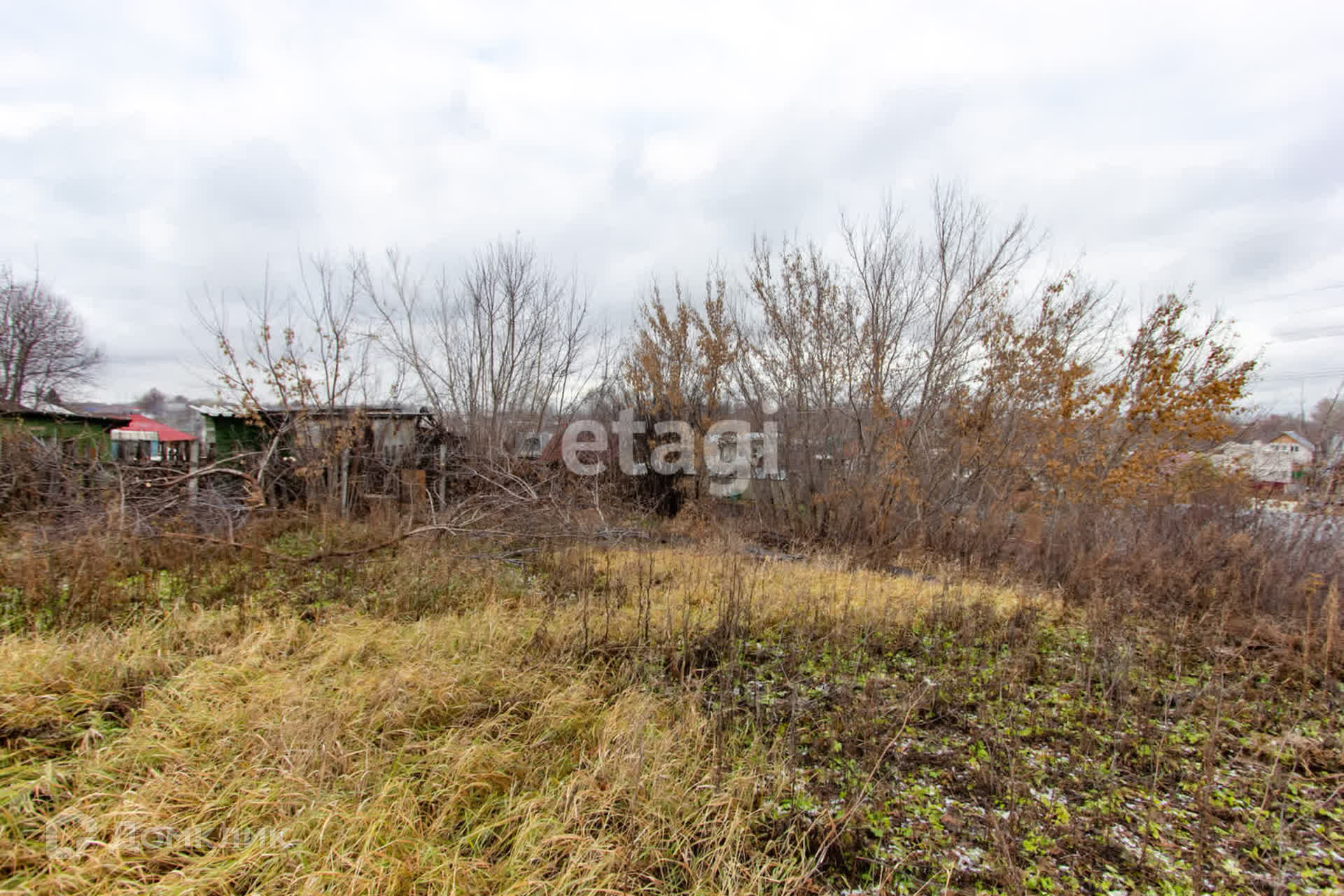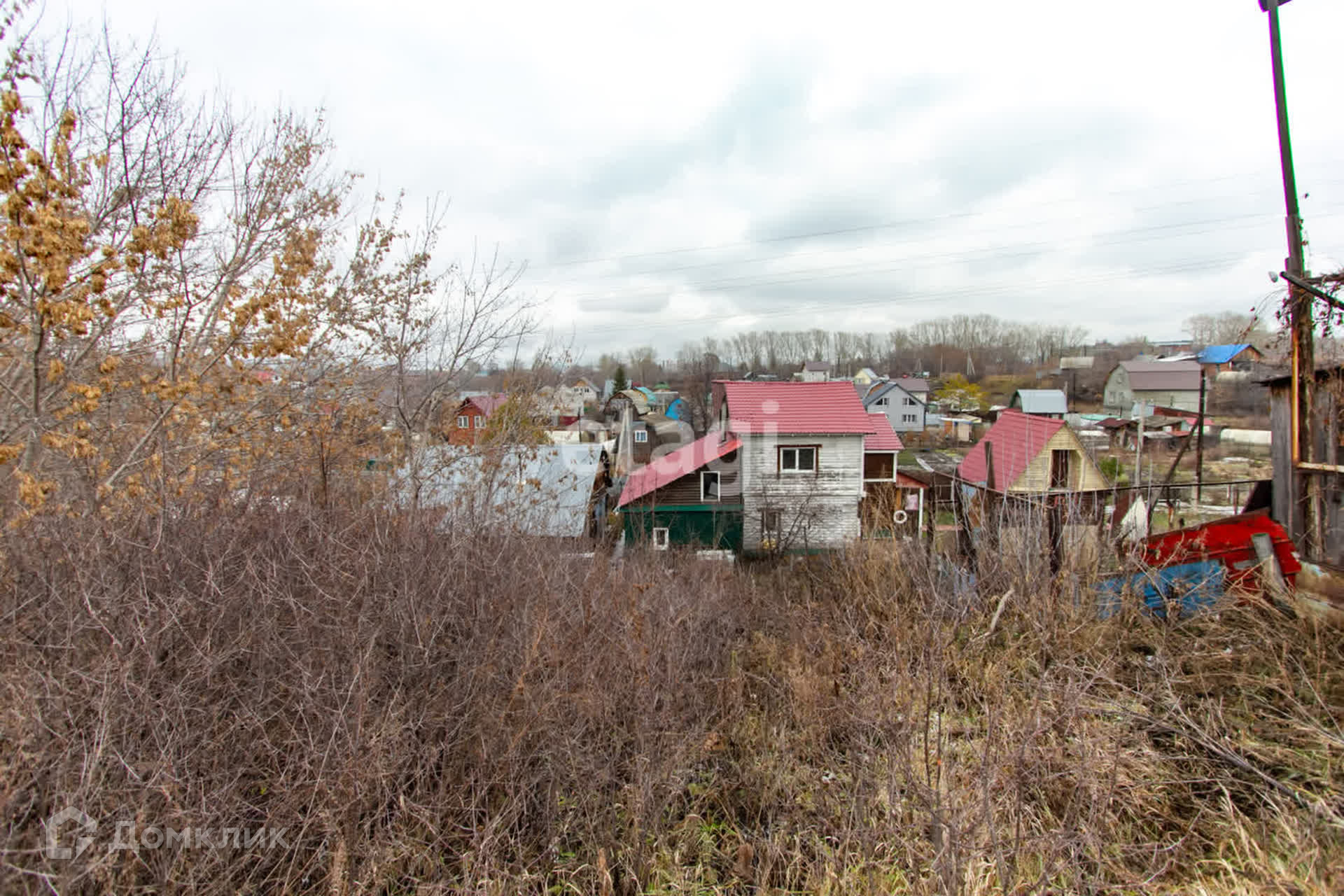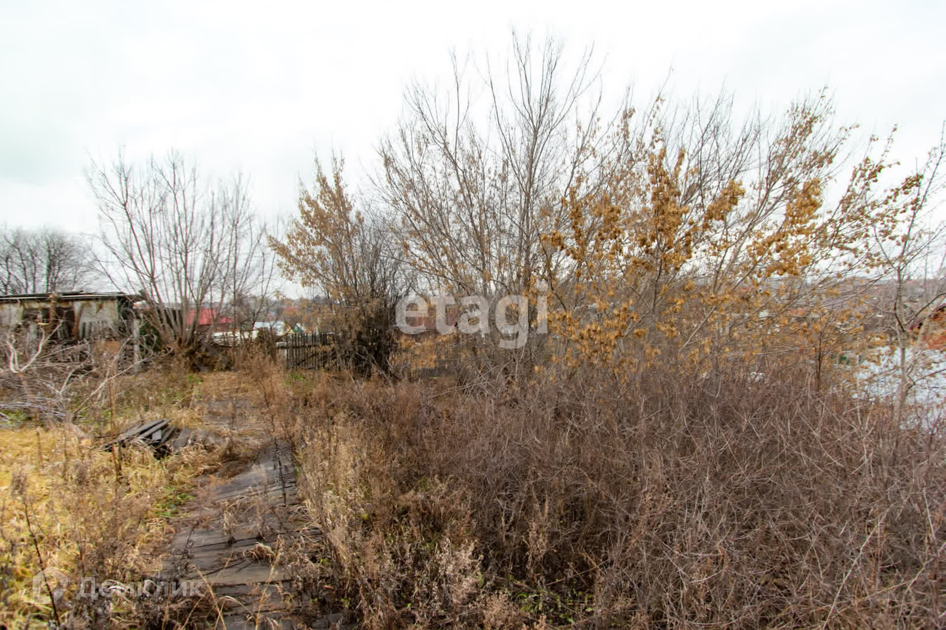 Участок находится на возвышенности, его не подтапливает, ничего не загораживает вид. Растёт яблоня, много вишни.