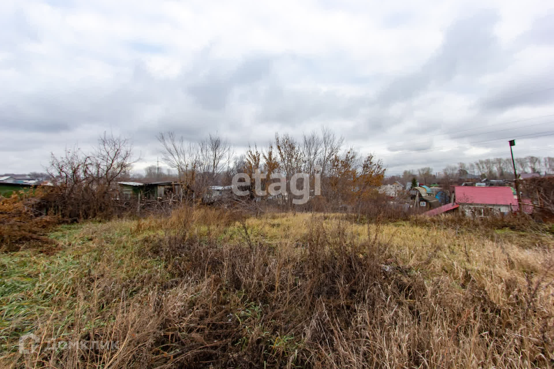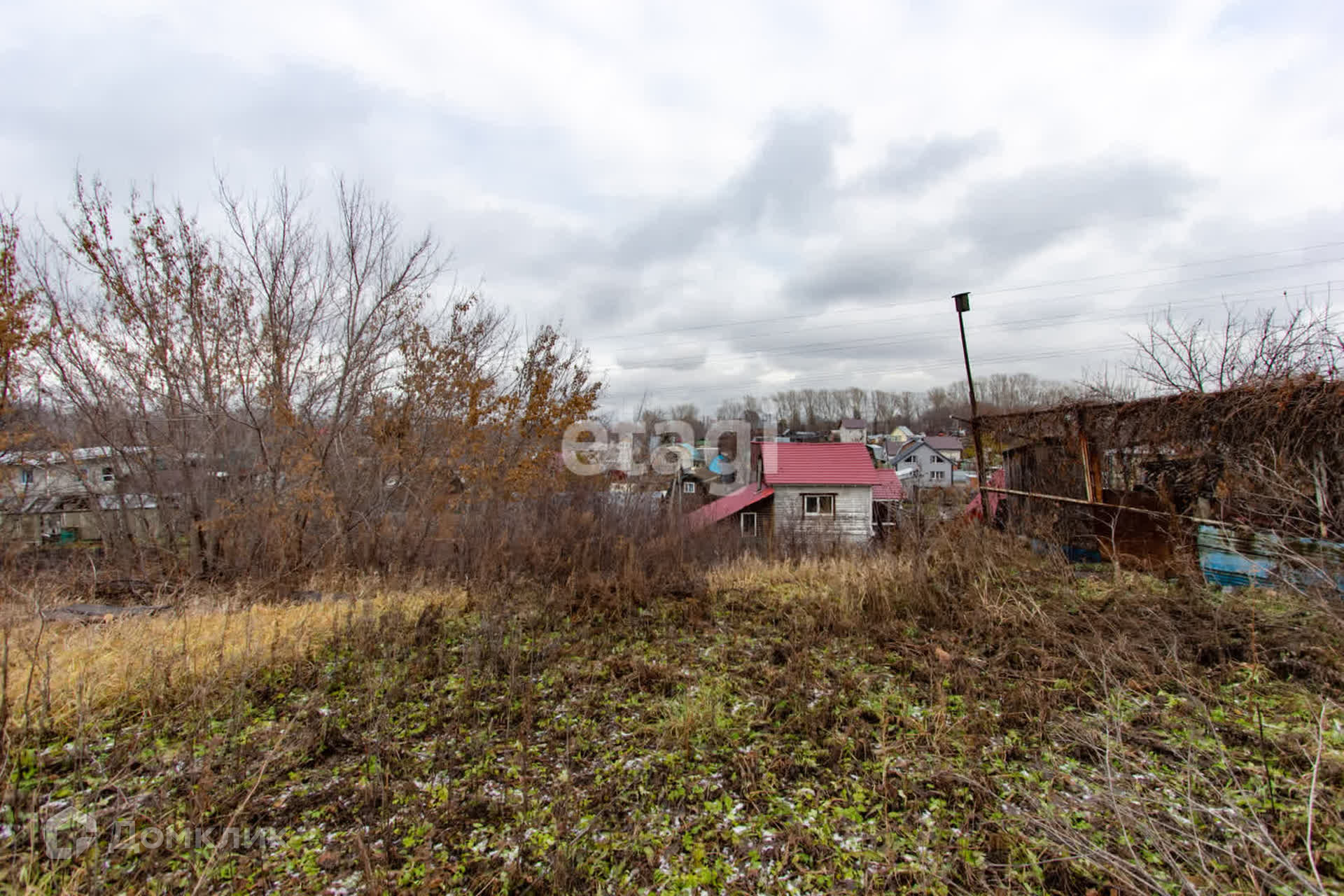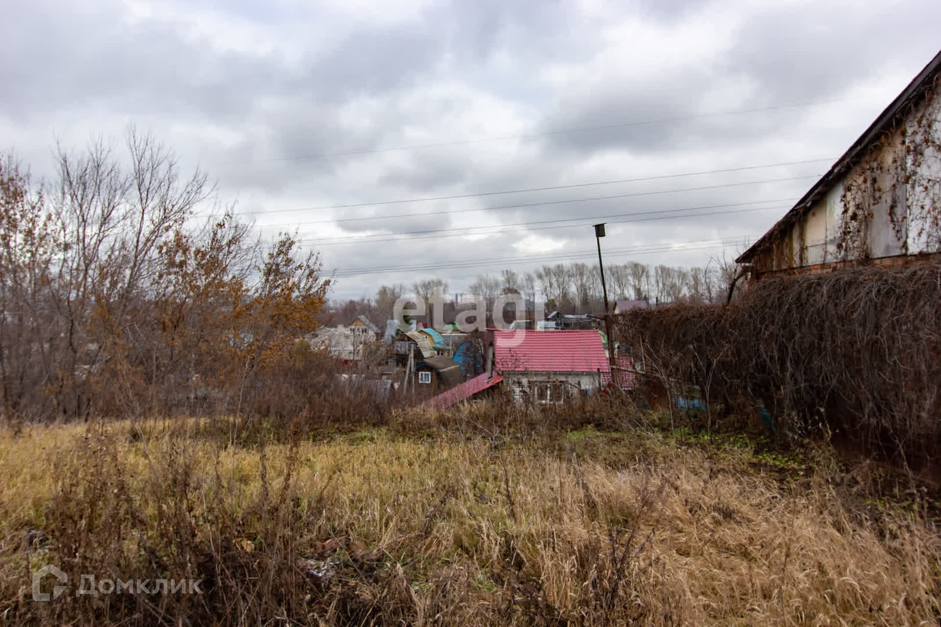 Участок находится на возвышенности, его не подтапливает, ничего не загораживает вид. Растёт яблоня, много вишни.