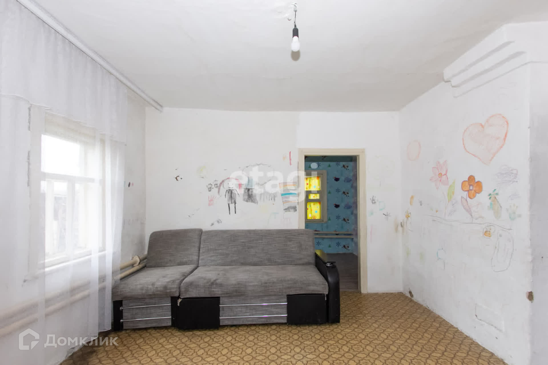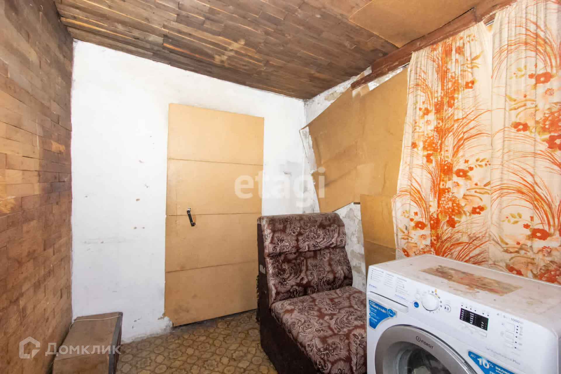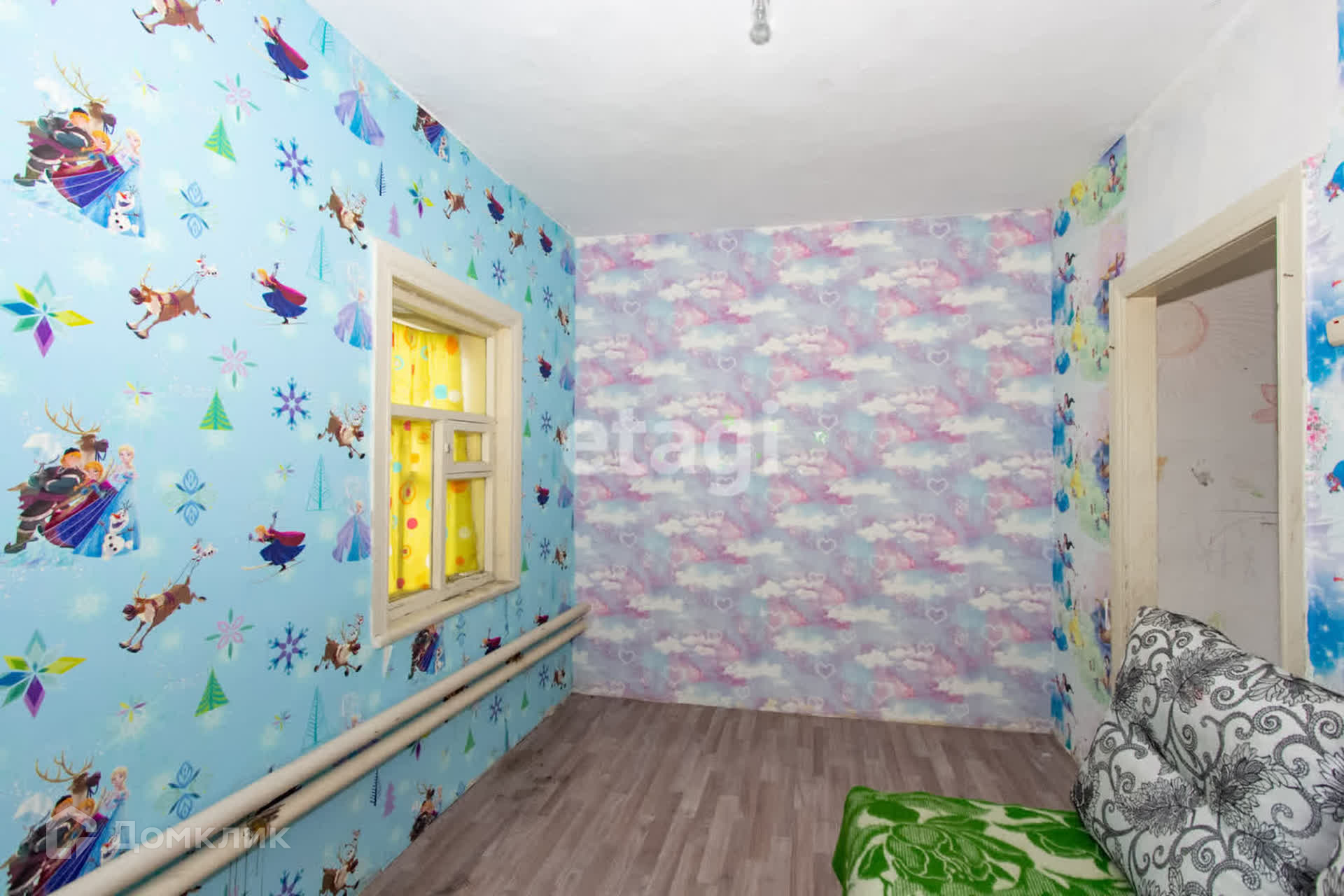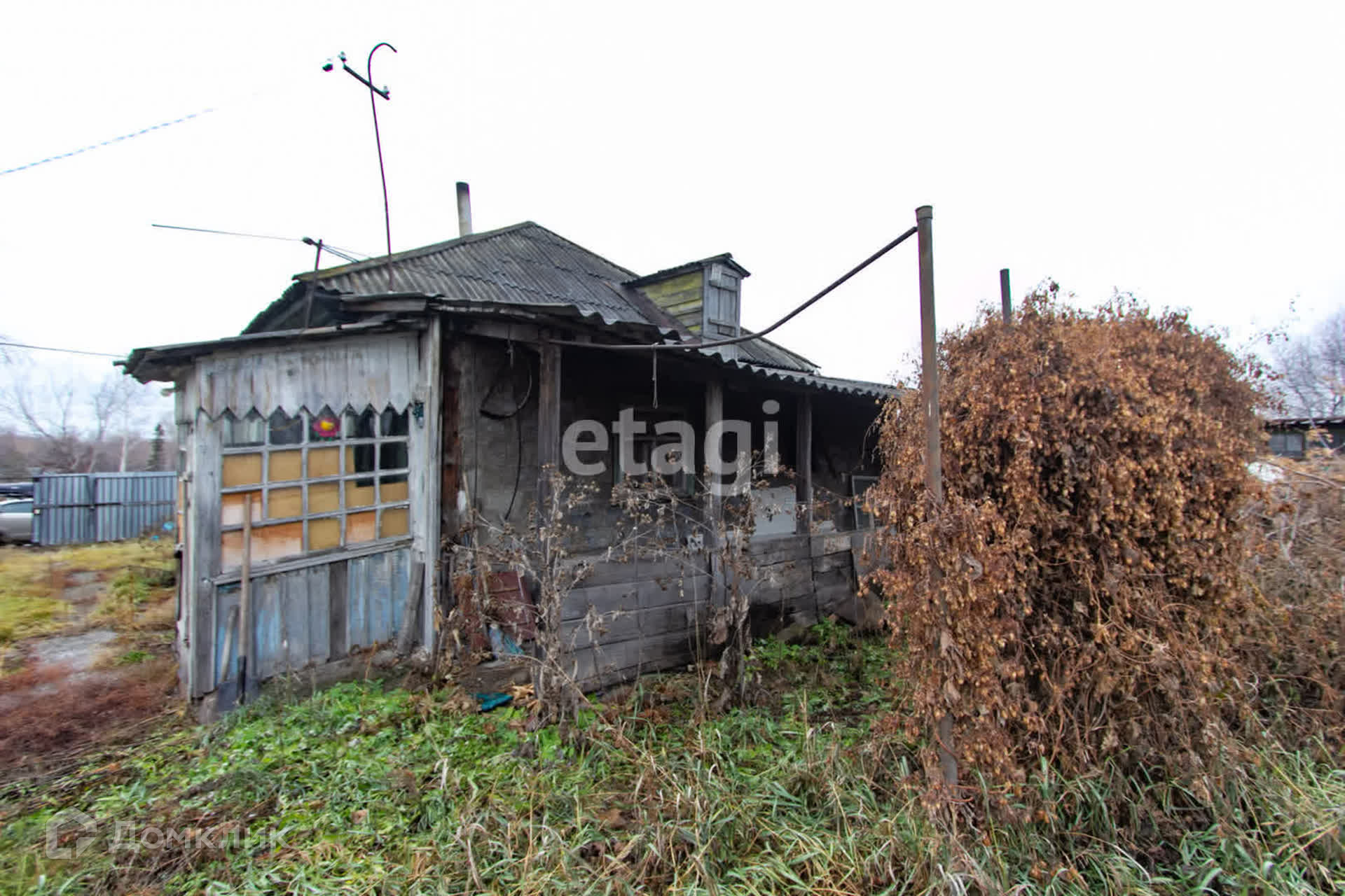 Дом построен по каркасной технологии со шлaкозacыпным наполнением на кирпичном фундаменте. Два окна заменены на пластиковые.