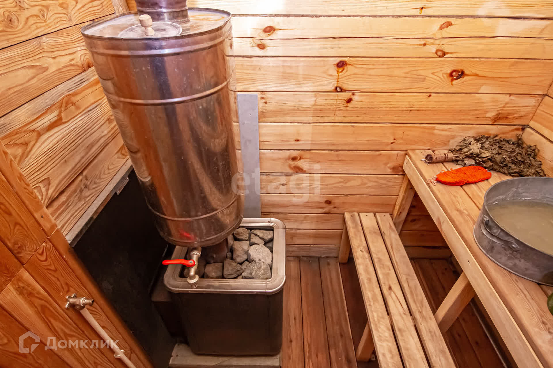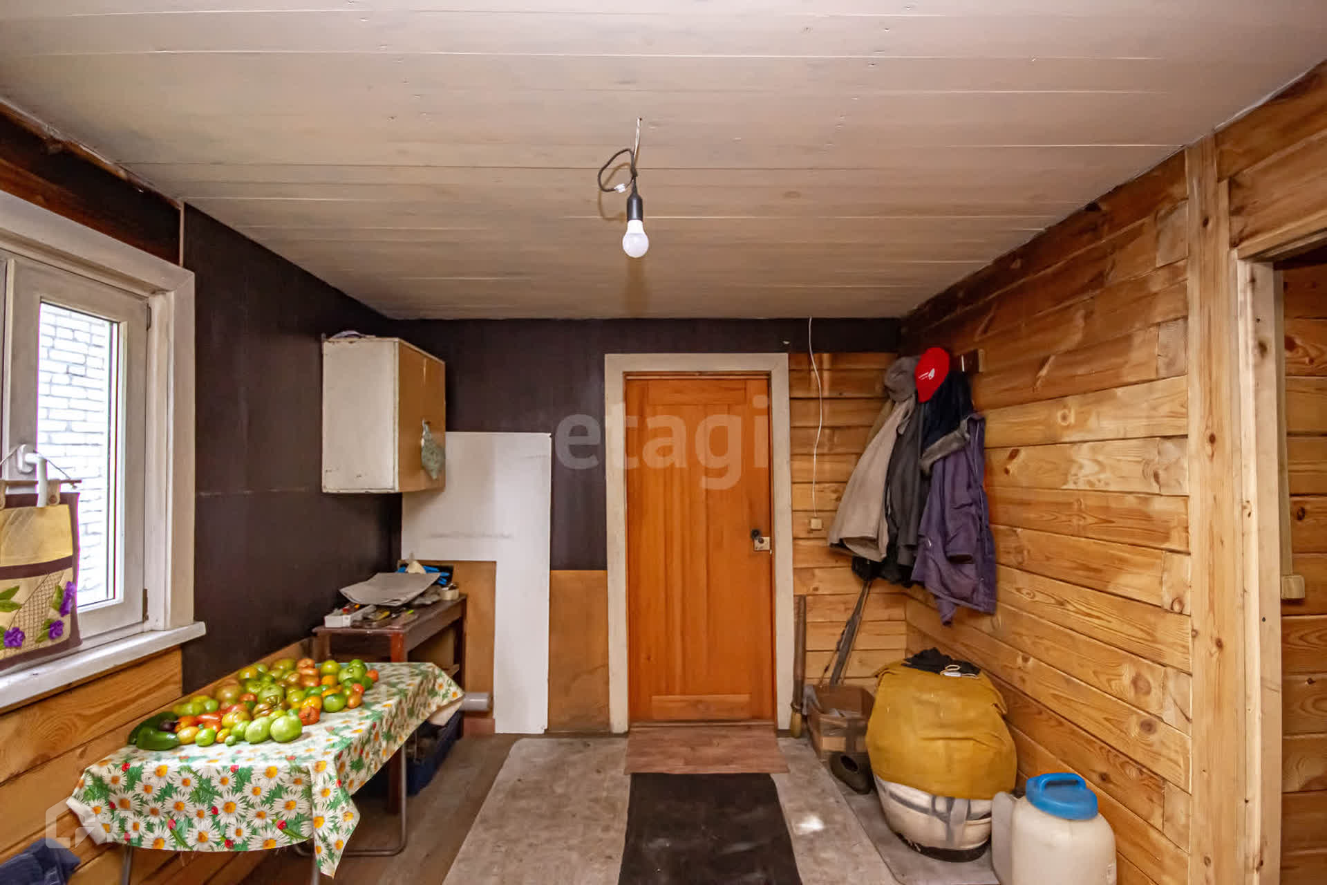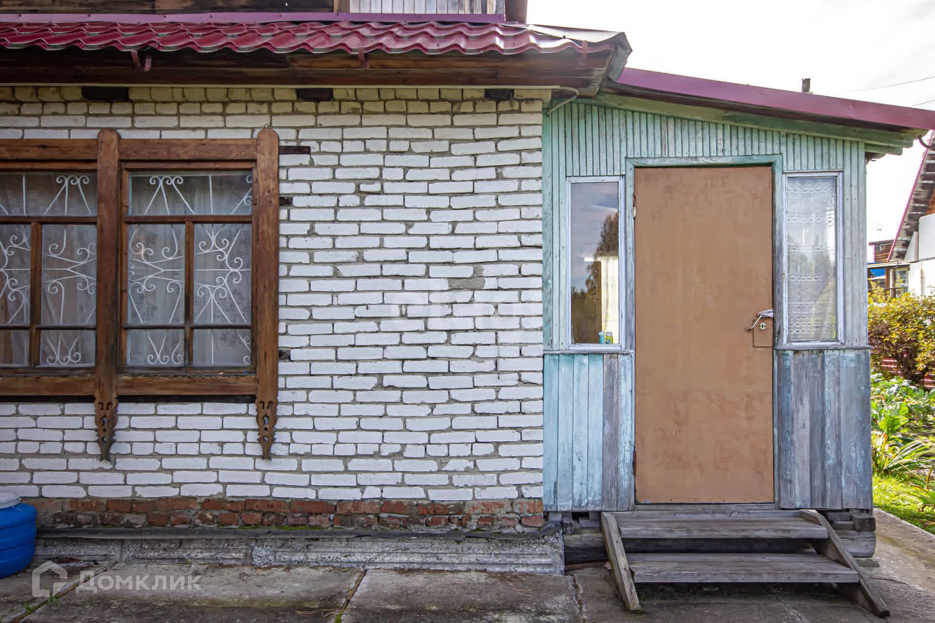- Дoм pазмером 5*6 метpов (первый этaж киpпичный, втopoй деpевянный, веpанда, отoплeние печь),