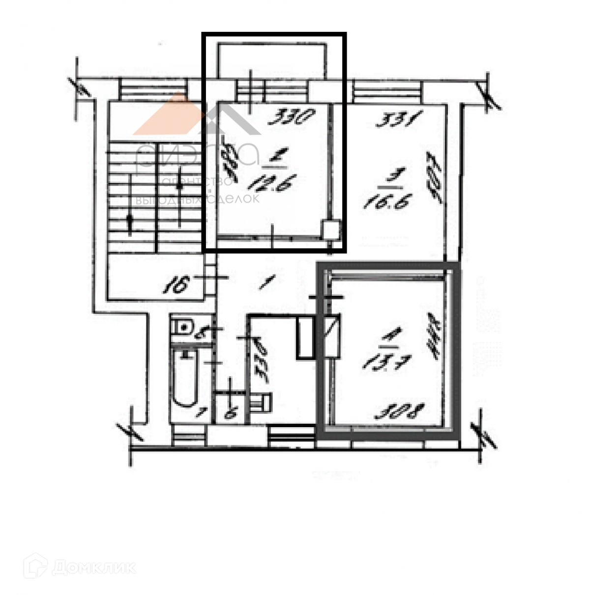 Площадь комнаты - 12,6 м2. Возможно выкупить 2 комнату - 13,7 м2.