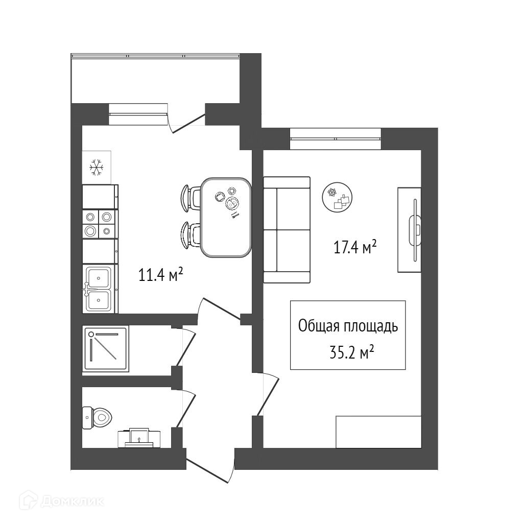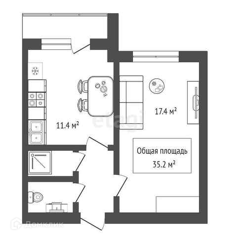 Общая площадь 35.2 м2