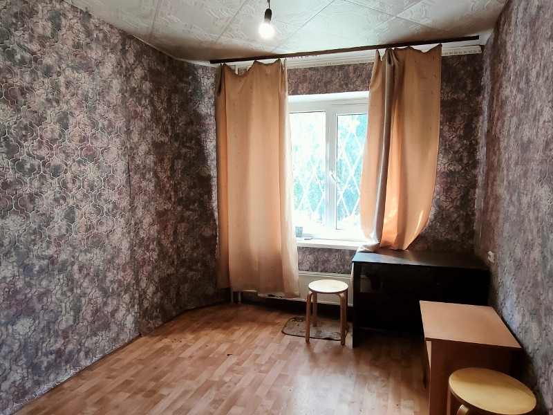 Комната- объект, в трехкомнатной квартире. Этаж первый - высокий. Дом вместе с остальными домами в этом жилмассиве строился по специальной программе для военных.