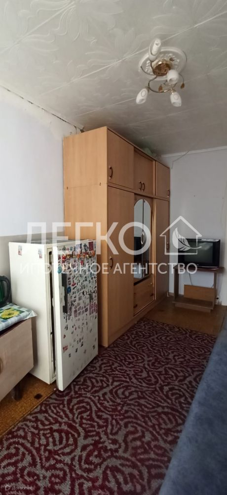 Продается комната 11 кв.метров в трехкомнатной квартире на пятом этаже. Есть возможность выкупа квартиры целиком! В доме был произведен ремонт кровли, крыша не течет. Комната светлая, солнечная, окно пластиковое, вид из окна на деревья, которые создают тень в жаркий день. В комнате установлена новая входная дверь. Комната продается с мебелью и техникой (холодильник, телевизор, стиральная машина), все что есть на фото, кроме дивана. В непосредственной близости к дому расположены два детских сада, школа, магазины, остановка общественного транспорта, все рядом! Соседи адекватные! В перспективе есть возможность выкупить оставшиеся две комнаты.  Дополнительно оплачивается комиссия с покупателя. Звоните, показ комнаты по договоренности.