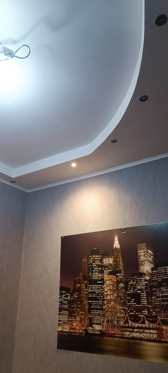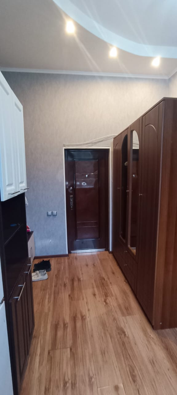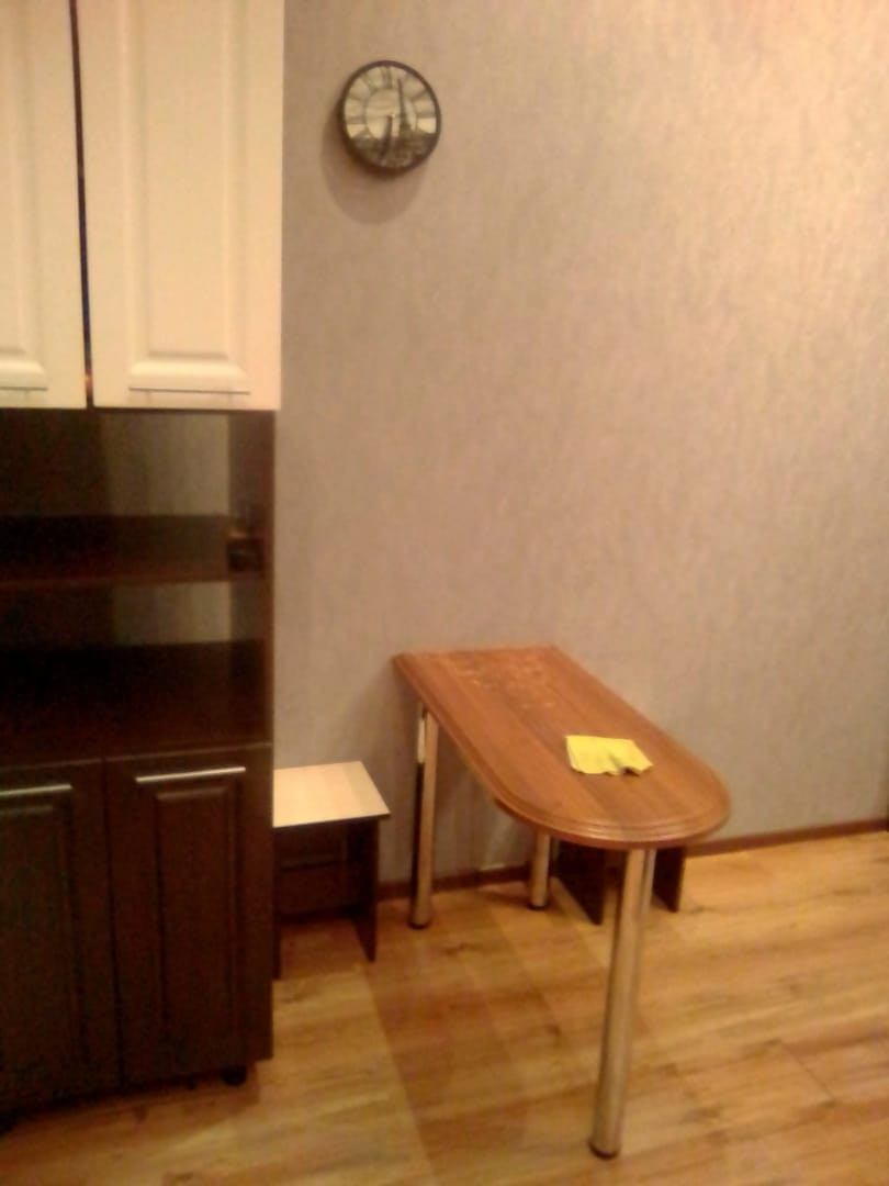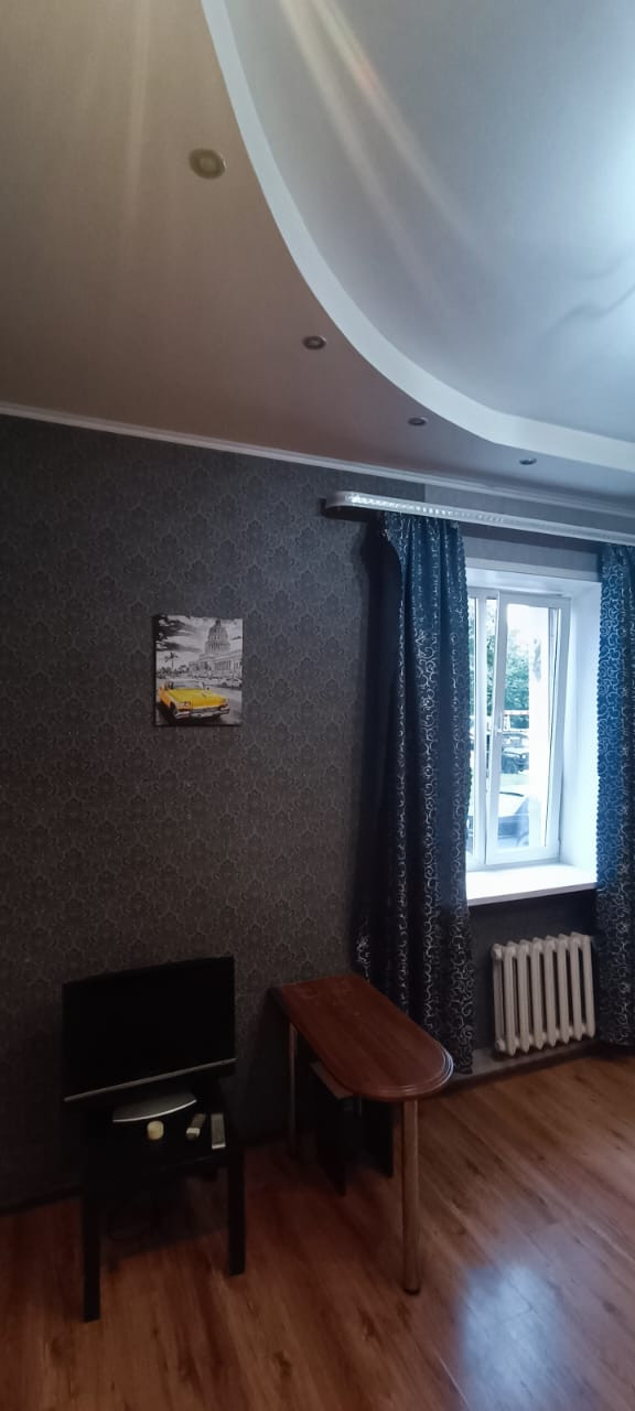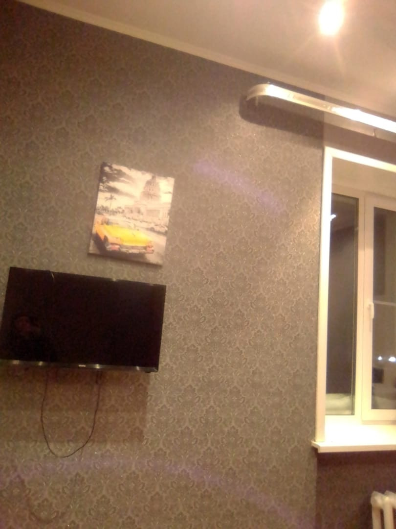 Установлены большое пластиковое окно и хорошая входная дверь, потолок натяжной, на полу линолеум.