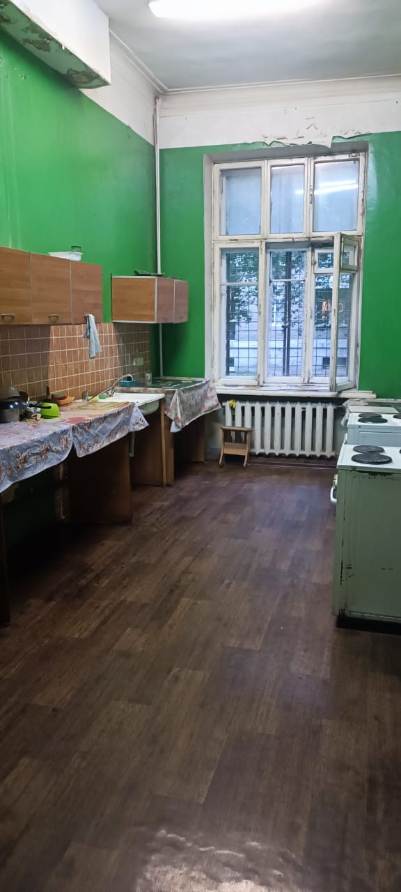 Туалет, общая кухня и душевая комната на этаже.