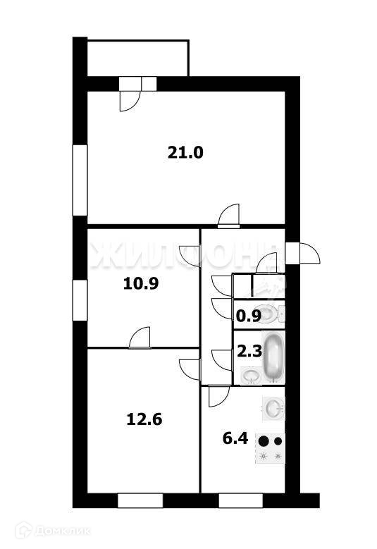 Жилая площадь 12.6 м2