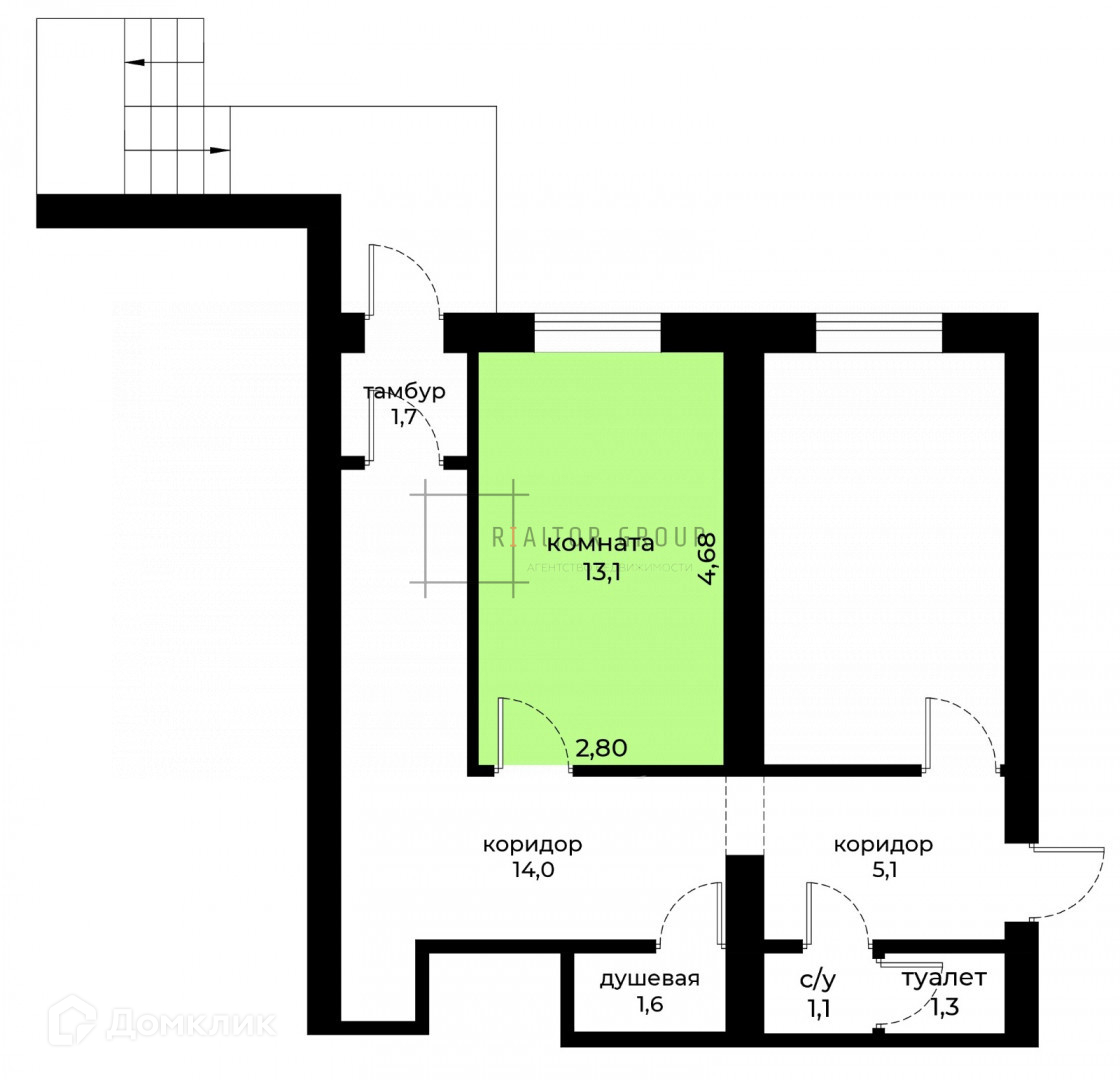Общая площадь 13.1 м2
