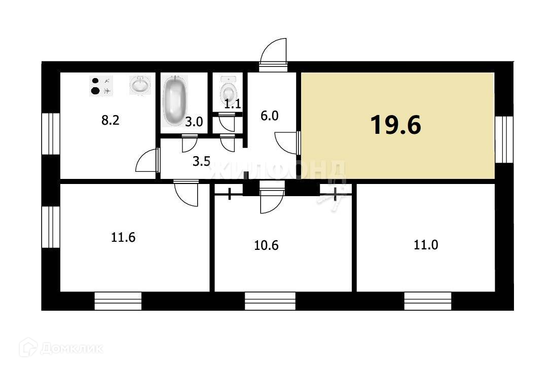 Жилая площадь 19.6 м2