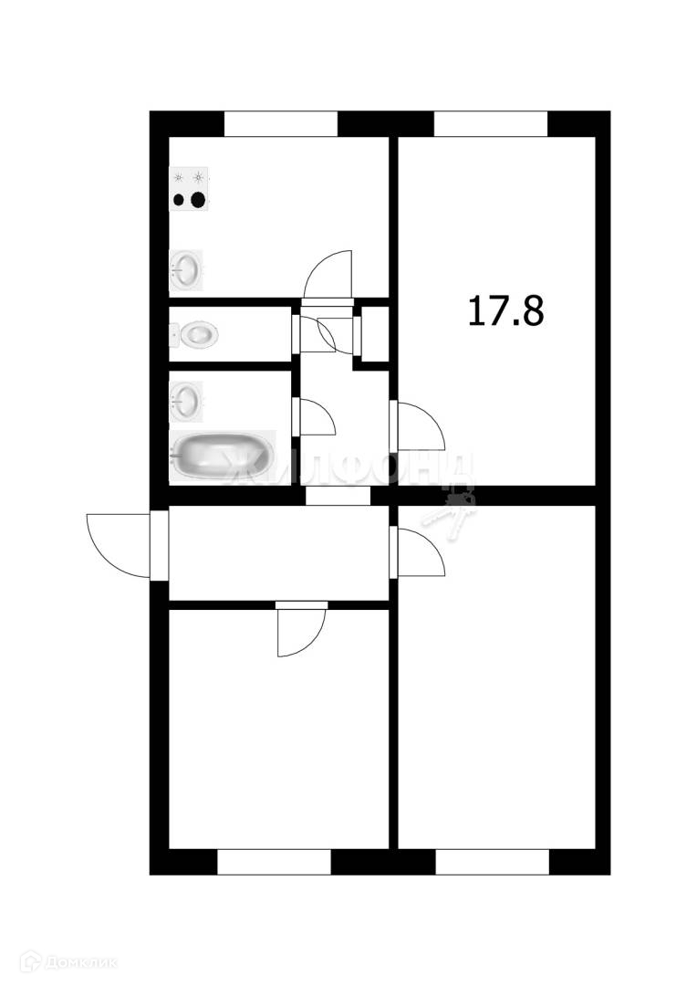 Жилая площадь 17.8 м2
