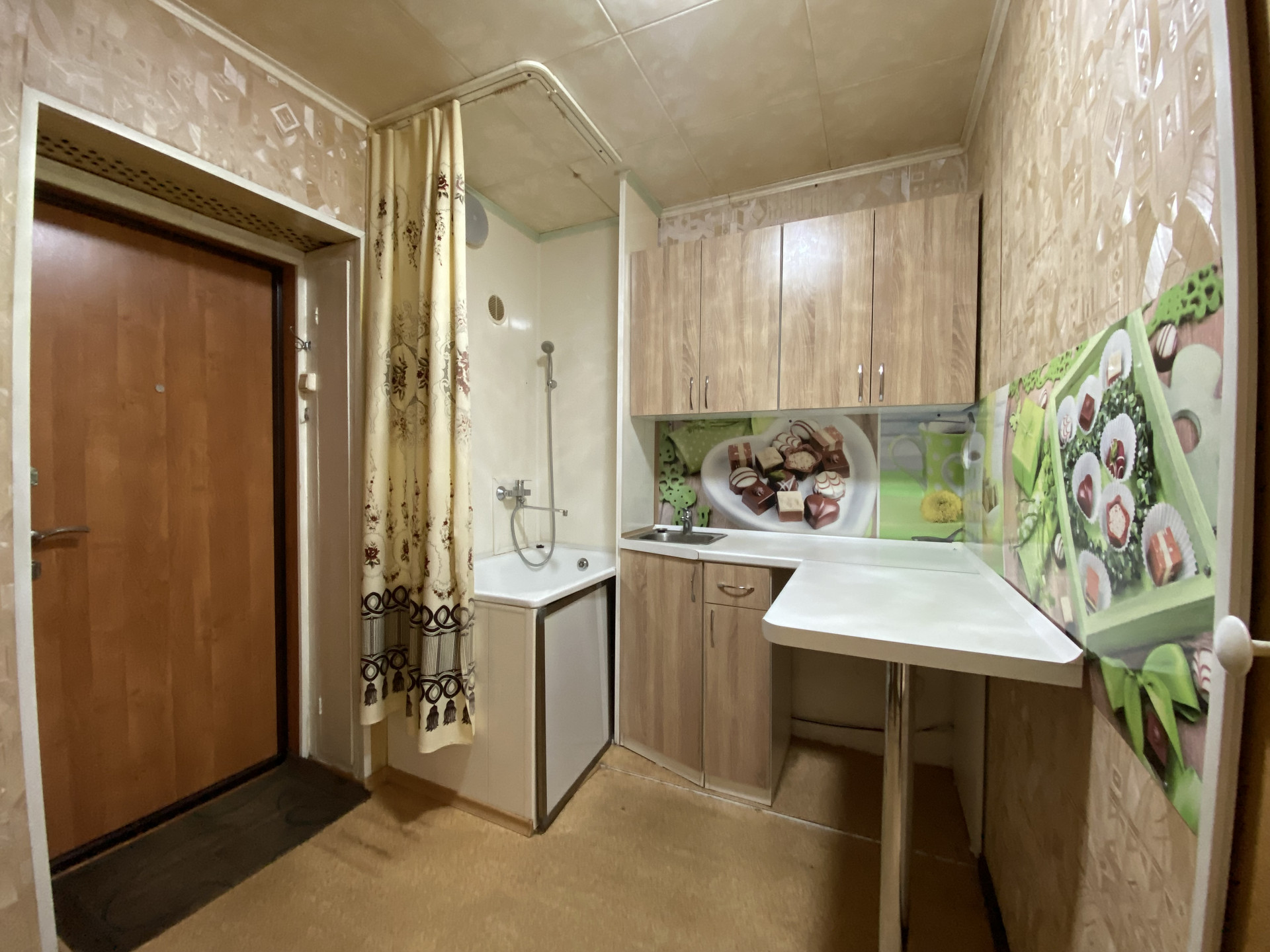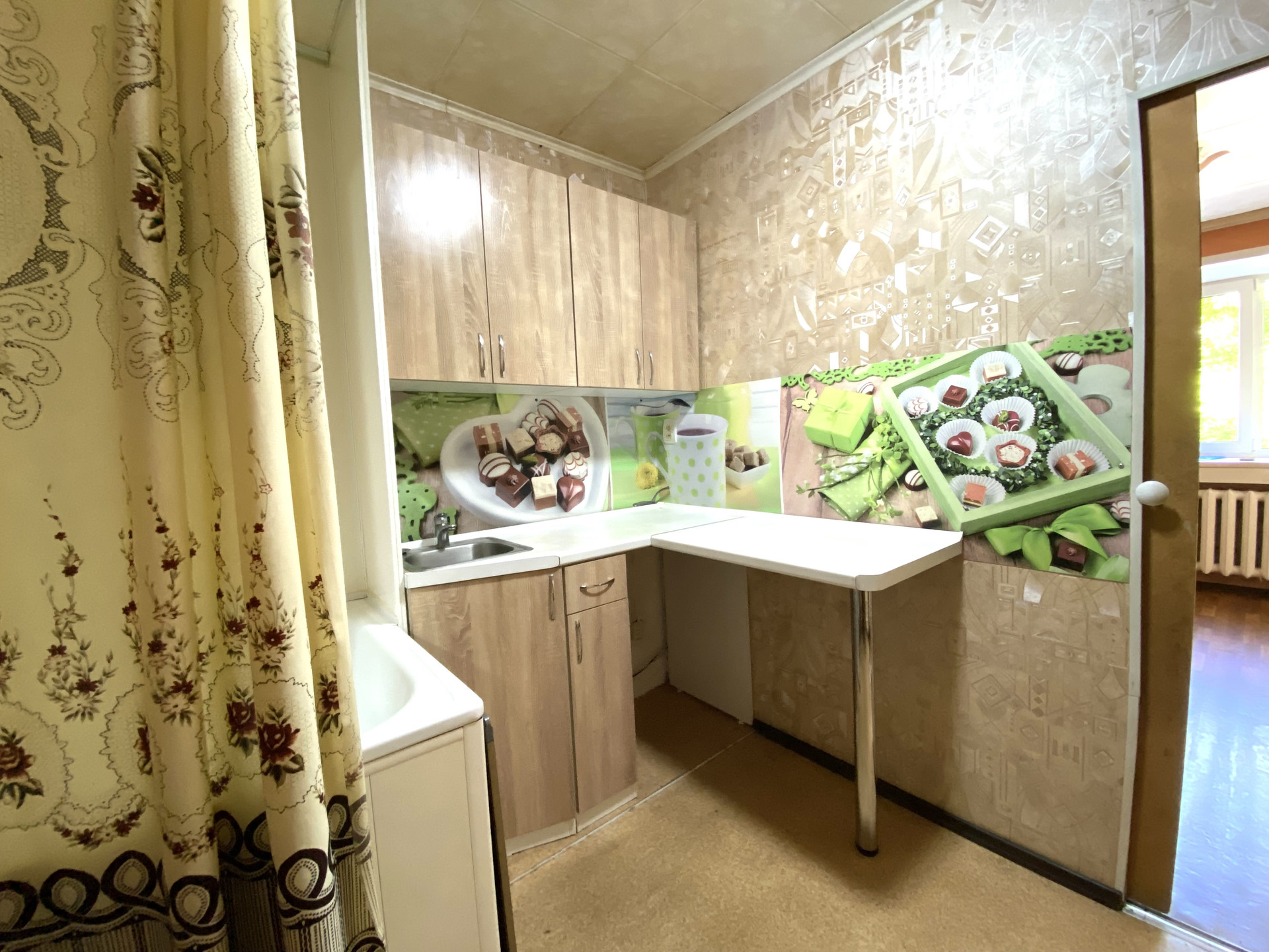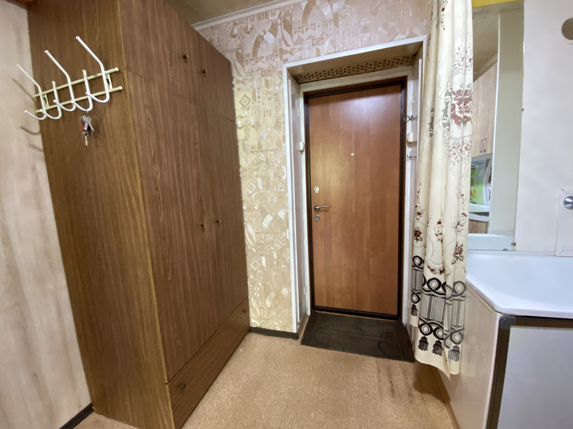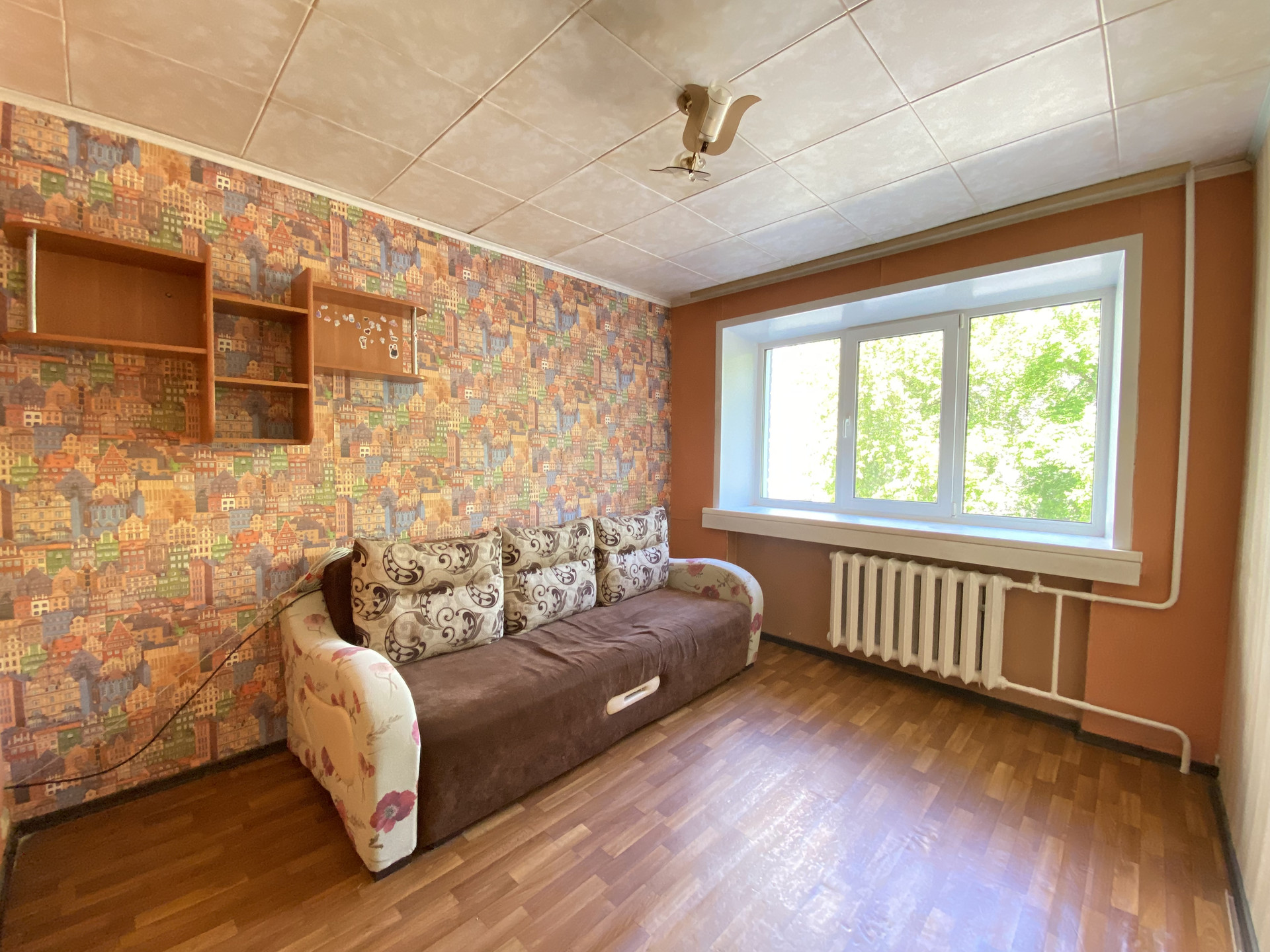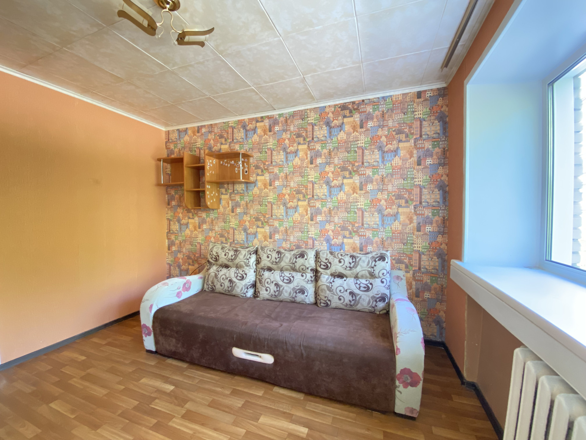 Новому собственнику остается кухонный гарнитур, диван, шкаф.