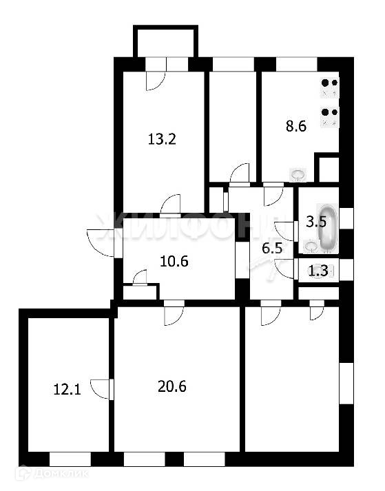 Жилая площадь 13.6 м2