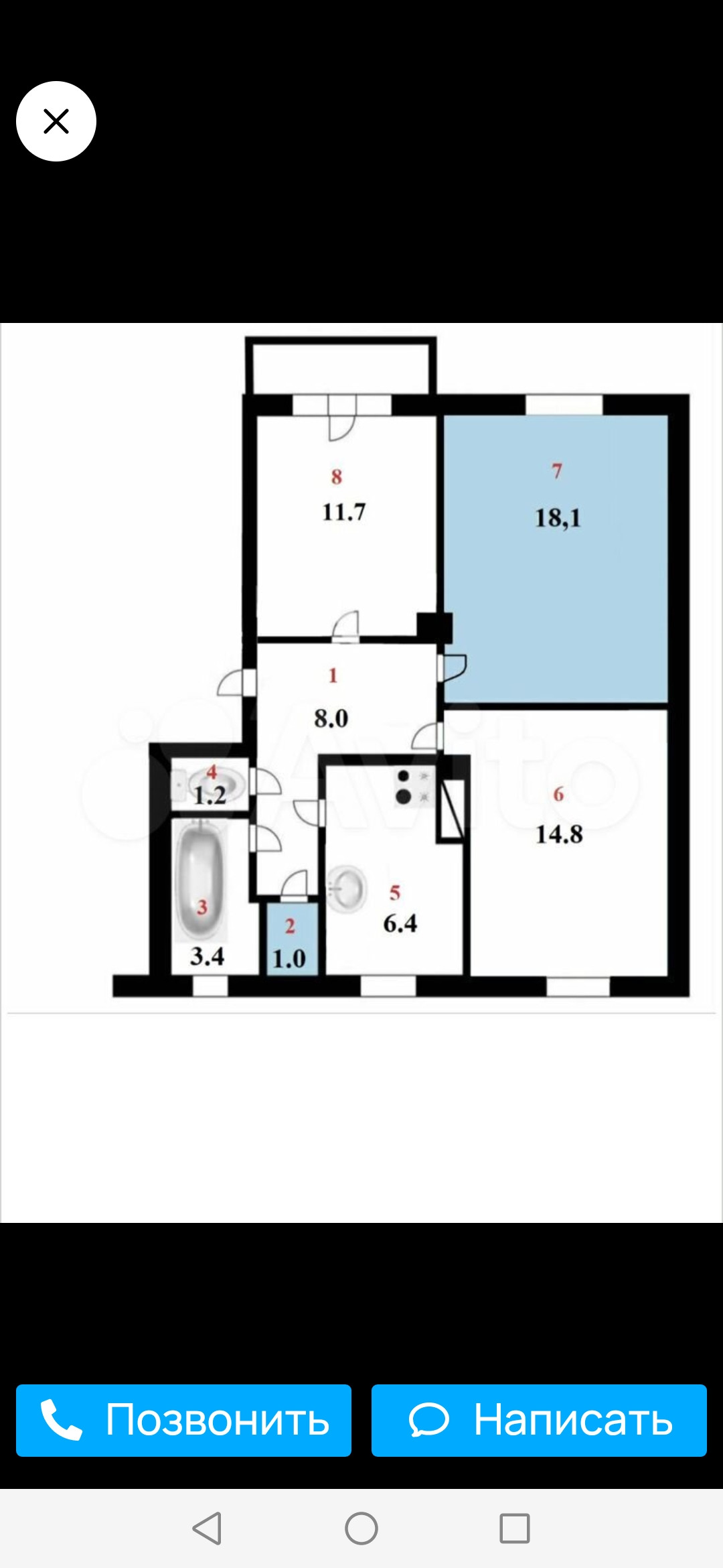 Жилая площадь 18.1 м2