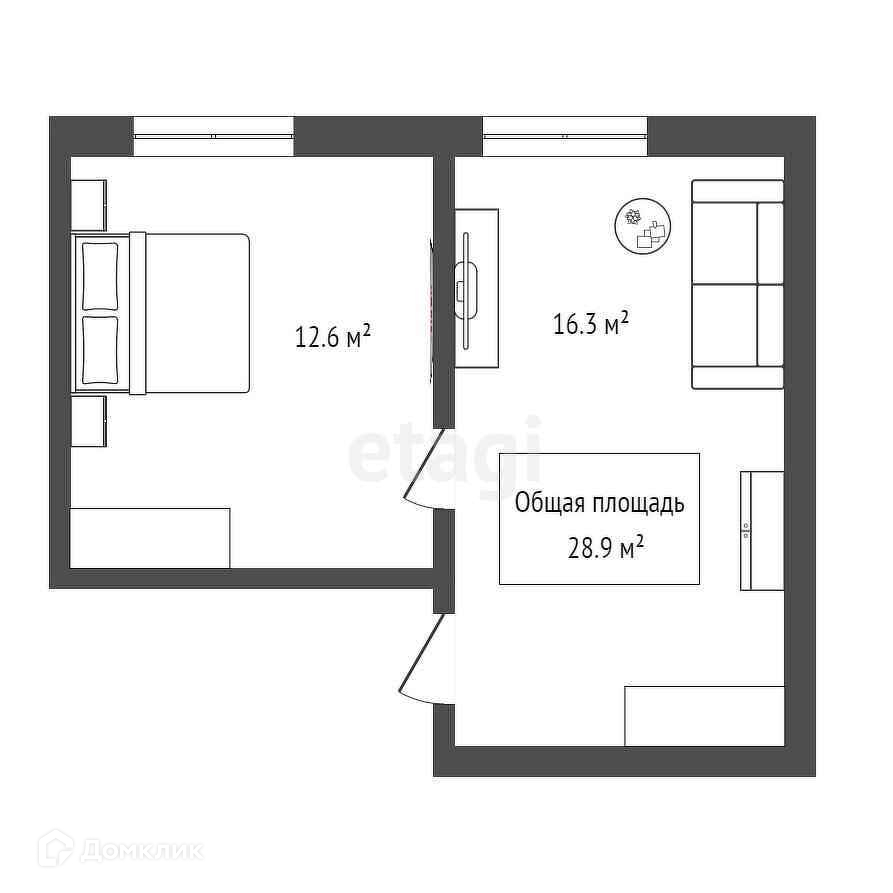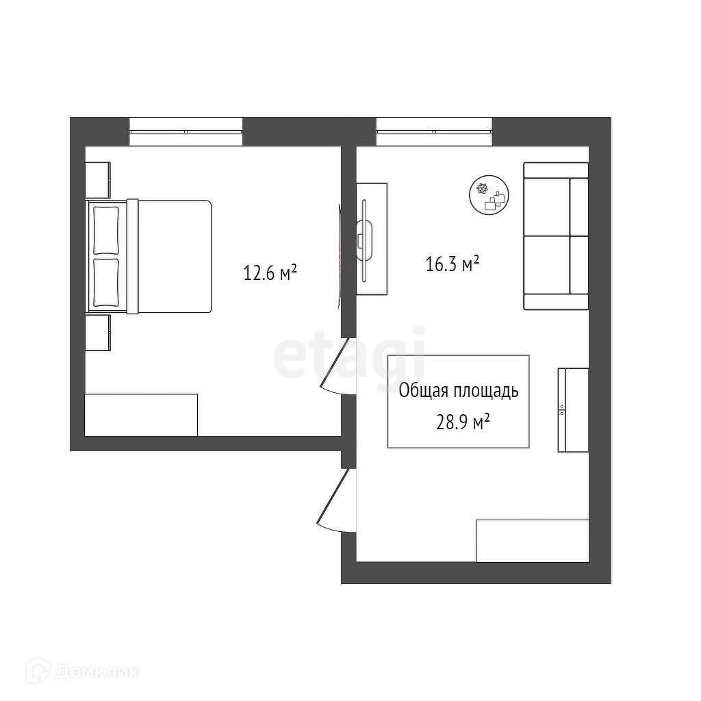 Общая площадь 28.9 м2
