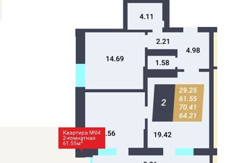 Общая площадь: 61.55 м2