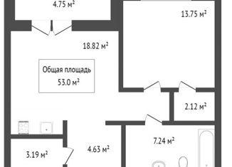 Общая площадь: 52.5 м2