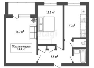Общая площадь: 44.4 м2