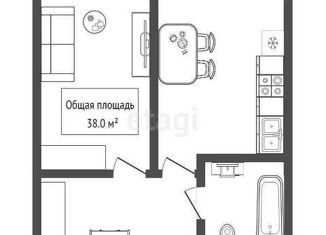 Общая площадь: 38 м2