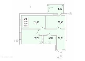 Общая площадь: 50.52 м2