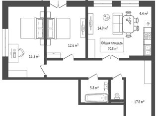 Общая площадь: 70.8 м2
