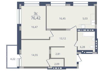 Общая площадь: 76.42 м2