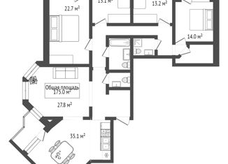 Общая площадь: 175 м2