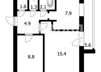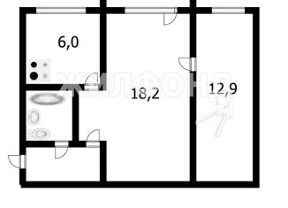 Общая площадь: 42.9 м2