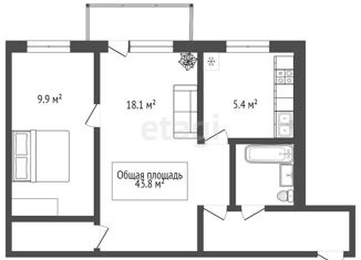 Общая площадь: 43.8 м2