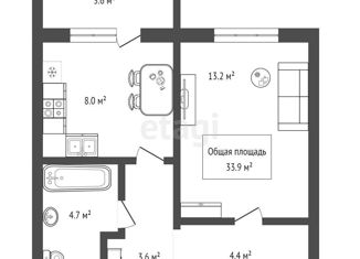 Общая площадь: 33 м2