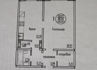 1-комнатная квартира на продажу, 48 м2, улица Виктора Шевелёва, 16