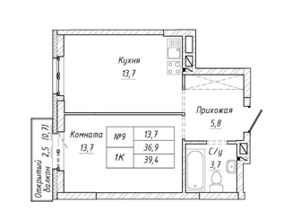 Общая площадь: 36.9 м2