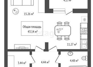 Общая площадь: 43.14 м2