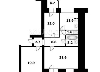 Трехкомнатная квартира на продажу, 76.3 м2, Серебренниковская улица, 4/2