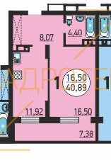 Общая площадь: 40.9 м2
